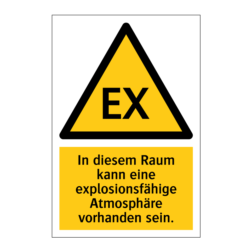 Warnschild mit dem Text In diesem Raum kann eine explosionsfähige Atmosphäre vorhanden sein.