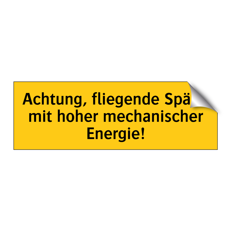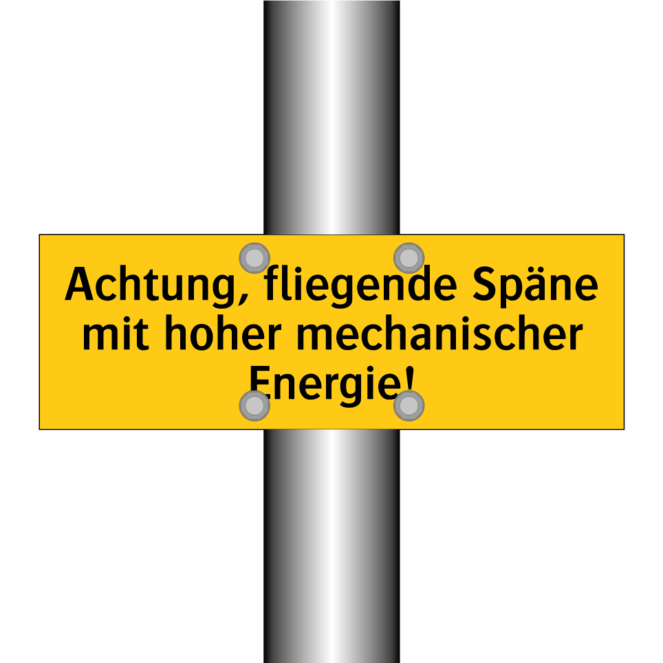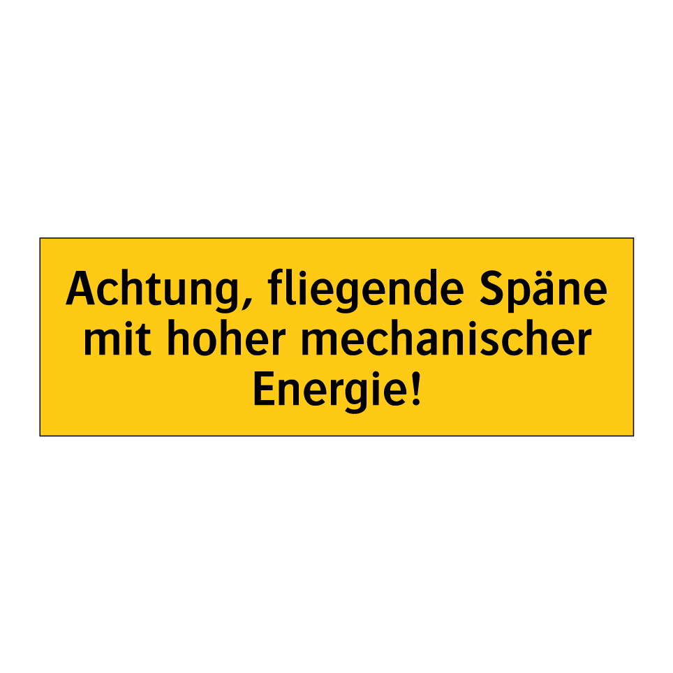 Warnschild mit dem Text Achtung, fliegende Späne mit hoher mechanischer Energie!