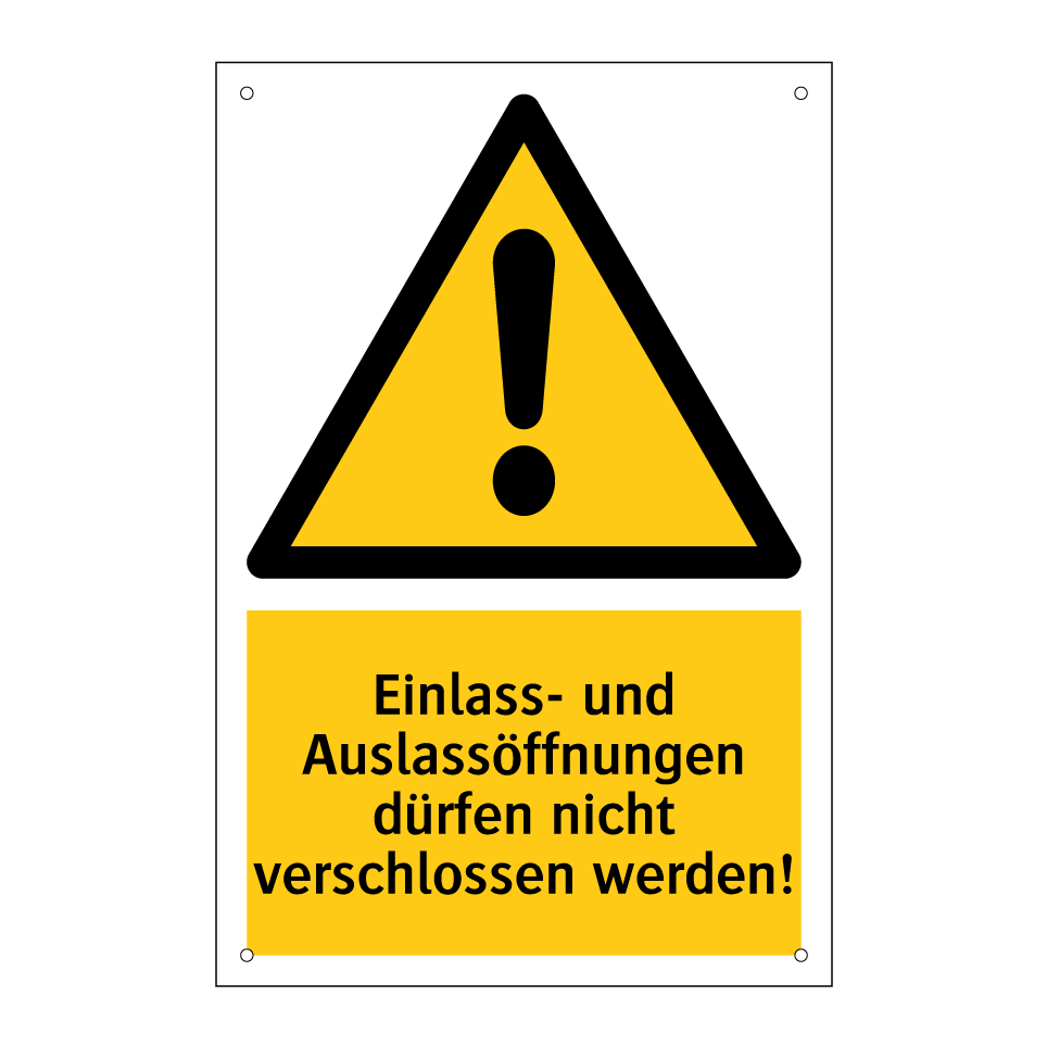 Warnschild mit dem Text Einlass- und Auslassöffnungen dürfen nicht verschlossen werden!