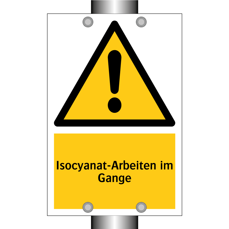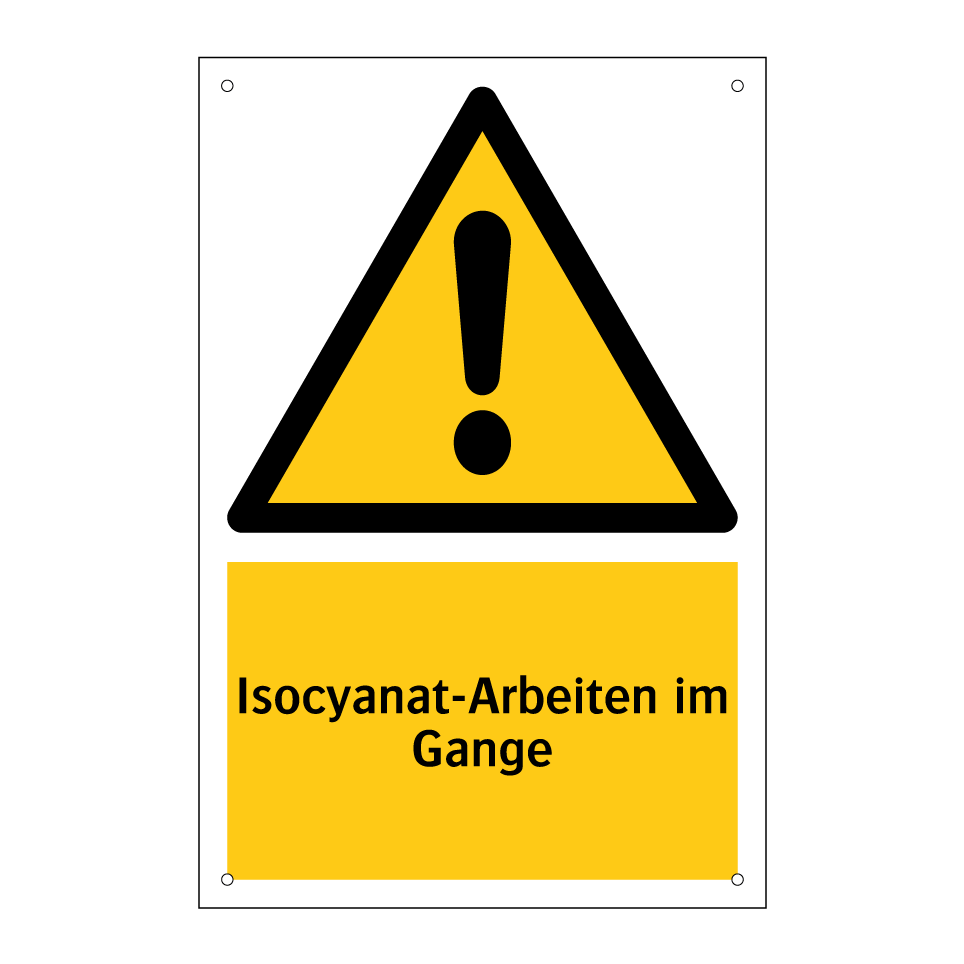Warnschild mit dem Text Isocyanat-Arbeiten im Gange