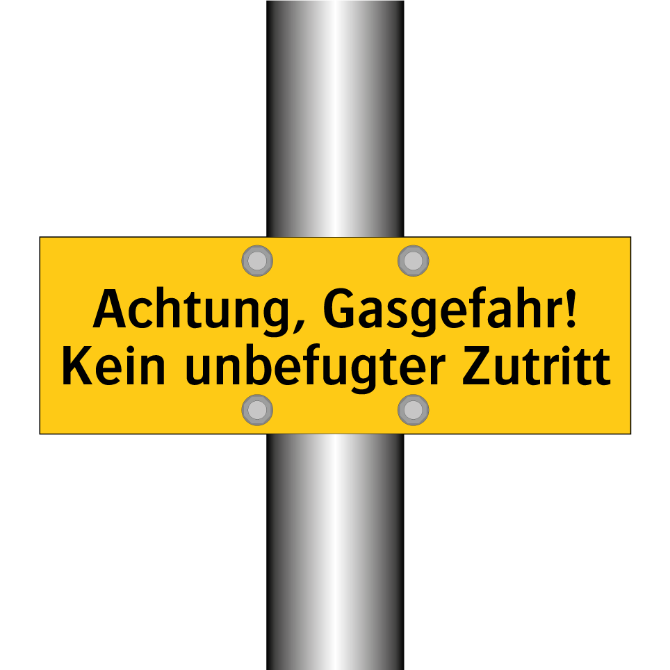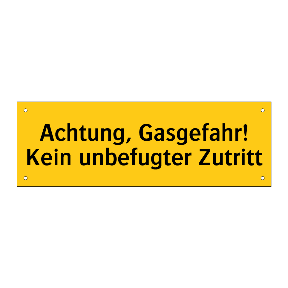 Warnschild mit dem Text Achtung, Gasgefahr! Kein unbefugter Zutritt