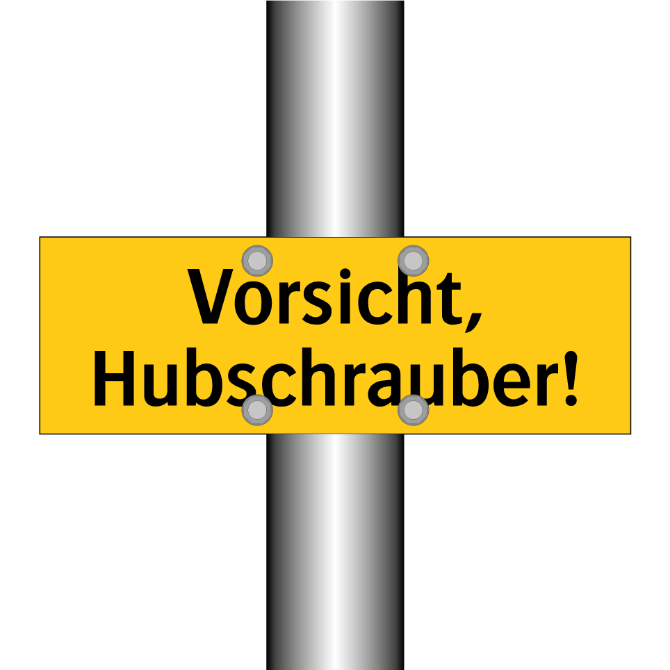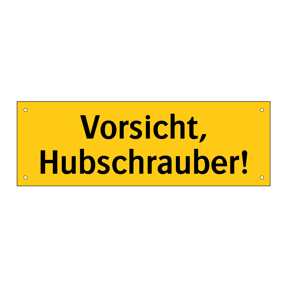 Warnschild mit dem Text Vorsicht, Hubschrauber!