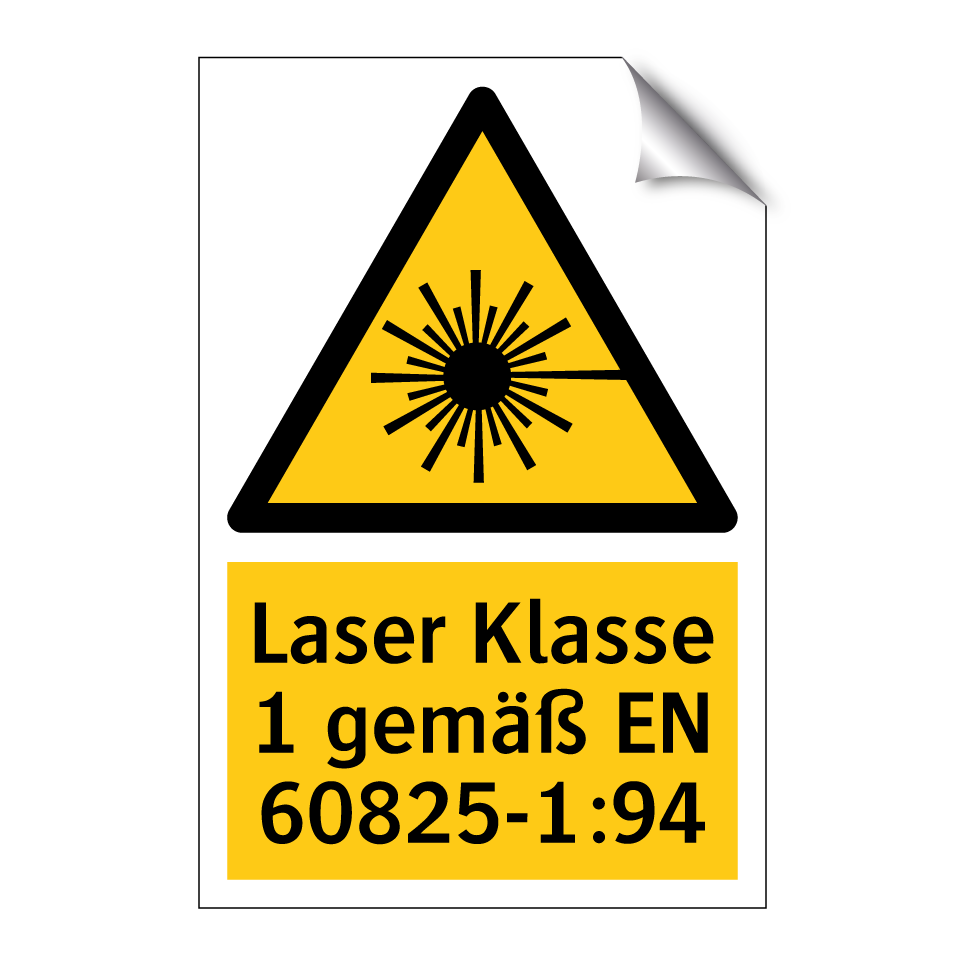 Warnschild mit dem Text Laser Klasse 1 gemäß EN 60825-1:94