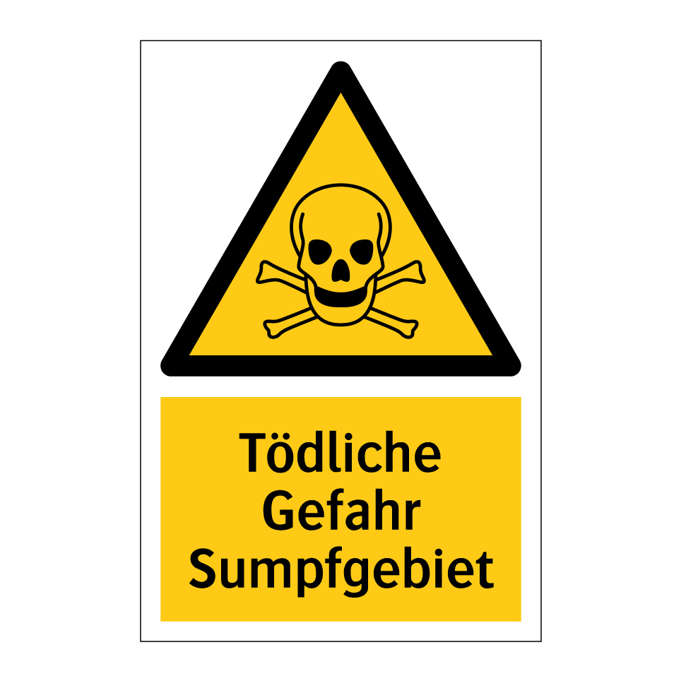 Warnschild mit dem Text Tödliche Gefahr Sumpfgebiet