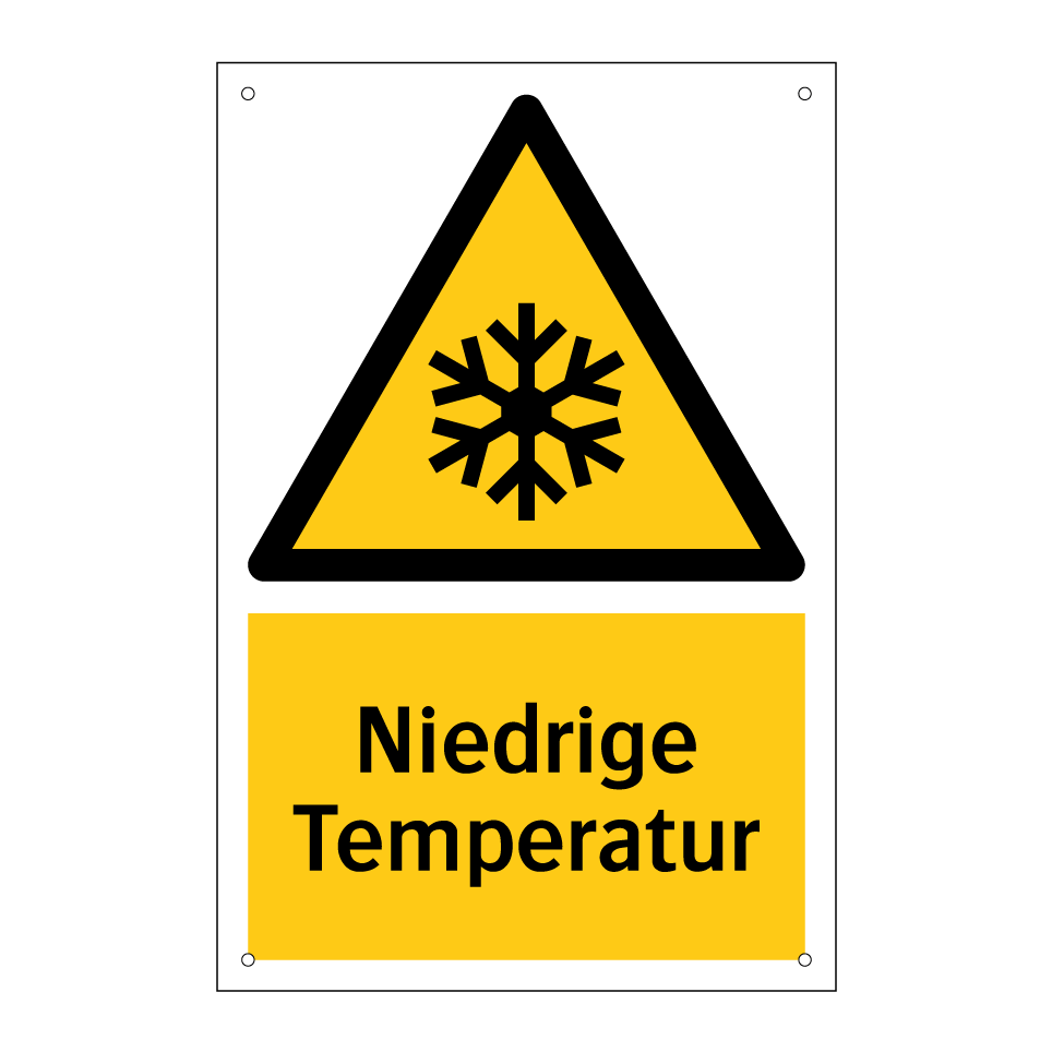 Diese Warnschild mit gelbem Hintergrund und schwarzem Text ist ideal, um auf niedrige Temperaturen hinzuweisen. Perfekt geeignet für den Einsatz in Kühlräumen, Gefrierbereichen oder anderen Orten, an denen die Temperatur stark abfällt. Die auffällige Symbolik sorgt dafür, dass die Botschaft klar und deutlich wahrgenommen wird. Platzieren Sie das Warnschild an Eingängen, Türen oder Wänden, um Mitarbeiter und Besucher effektiv zu warnen. Diese Warnschilder sind unverzichtbar in Lagerhäusern, Produktionsstätten und überall dort, wo Kälte ein Risiko darstellen könnte. Sorgen Sie für Sicherheit und vermeiden Sie Unfälle durch rechtzeitige Warnung vor Kälte.