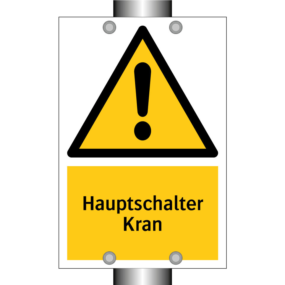Warnschild mit dem Text Hauptschalter Kran