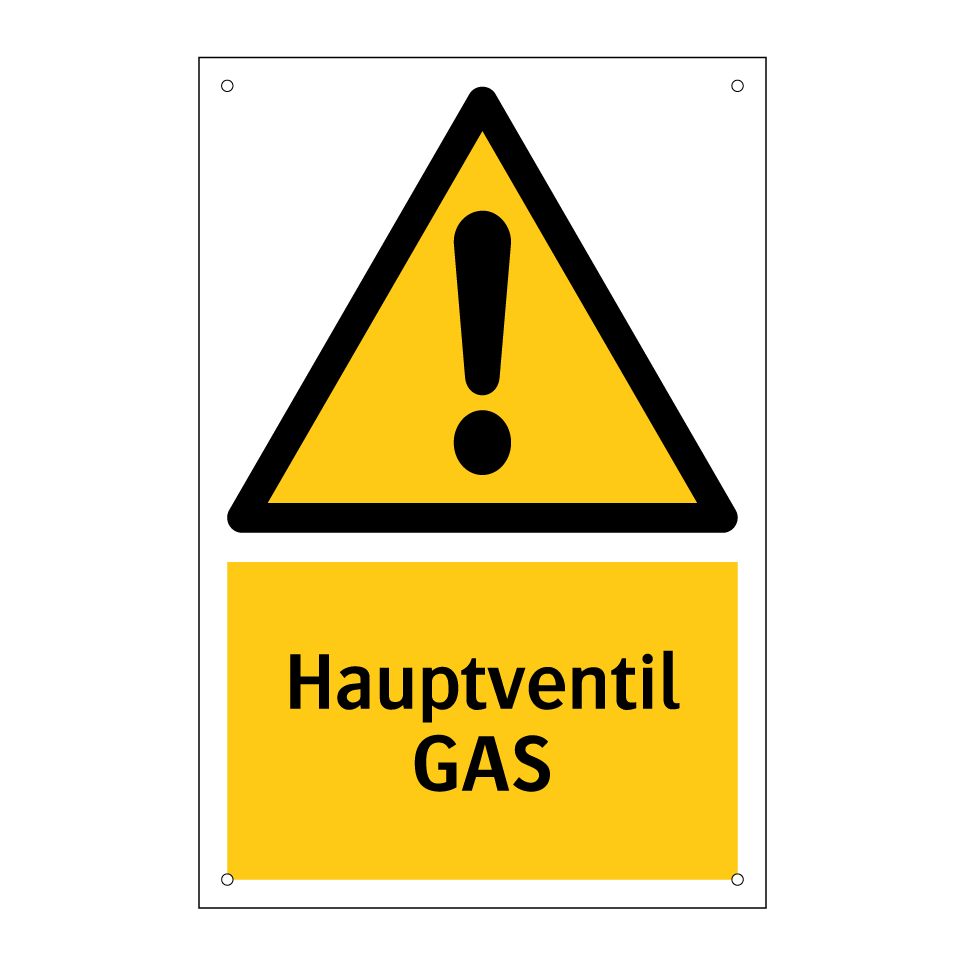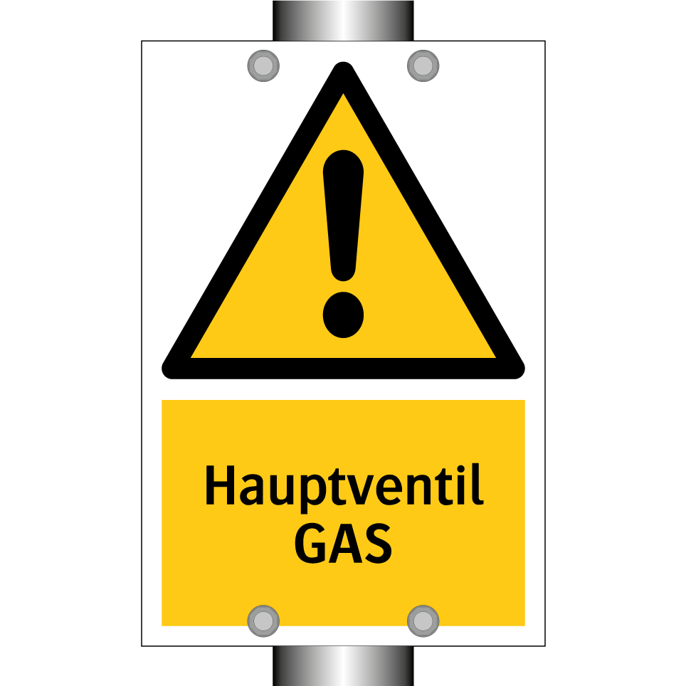Warnschild mit dem Text Hauptventil GAS