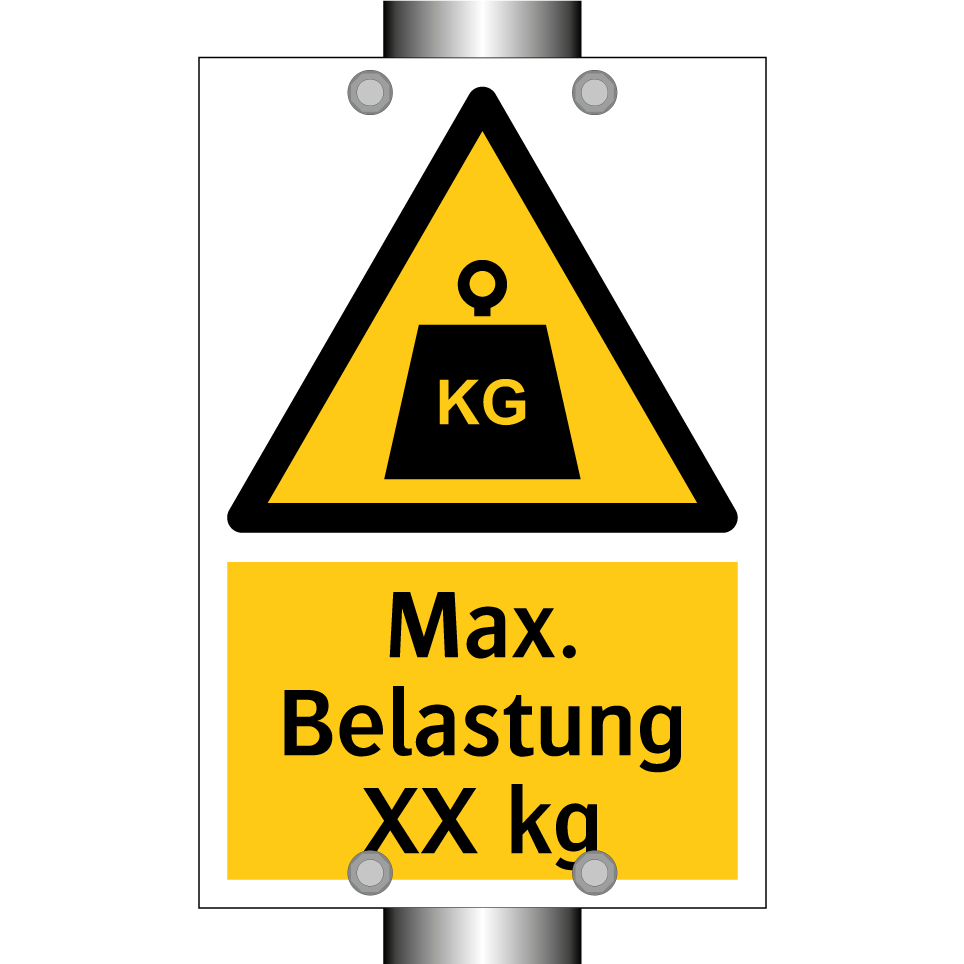 Warnschild mit dem Text Max. Belastung XX kg