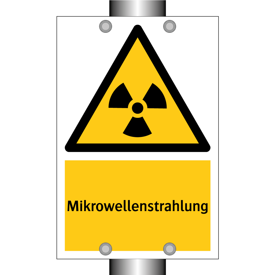 Diese Warnschild mit gelbem Hintergrund und schwarzem Text ist ideal, um auf die Gefahren von Mikrowellenstrahlung hinzuweisen. Sie eignet sich hervorragend für den Einsatz in Bereichen, in denen Mikrowellengeräte betrieben werden, wie zum Beispiel in Laboren, Industriebetrieben oder technischen Einrichtungen. Die auffällige Symbolik sorgt dafür, dass die Warnung nicht übersehen wird und trägt zur Sicherheit bei. Platzieren Sie die Warnschilder an gut sichtbaren Stellen, um Mitarbeiter und Besucher effektiv vor potenziellen Gefahren zu schützen. Diese Sicherheitsmaßnahme ist unerlässlich, um das Bewusstsein für Strahlungsrisiken zu schärfen und Unfälle zu vermeiden.