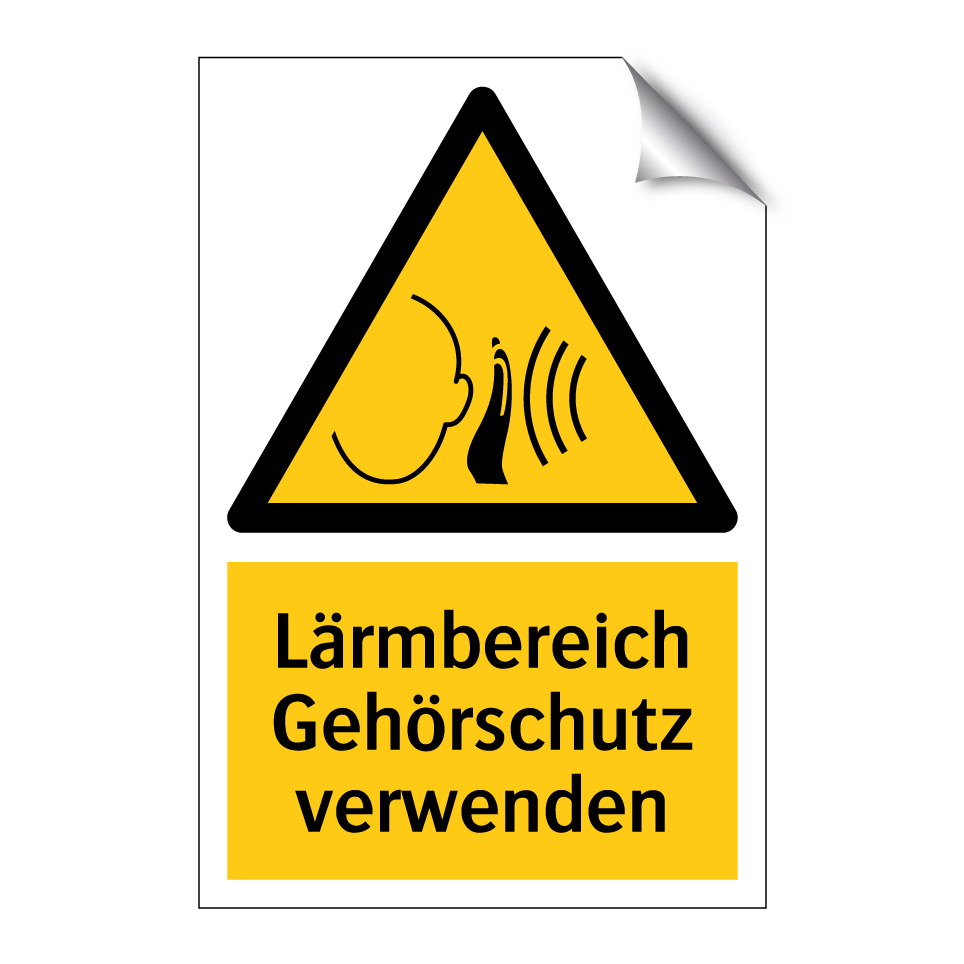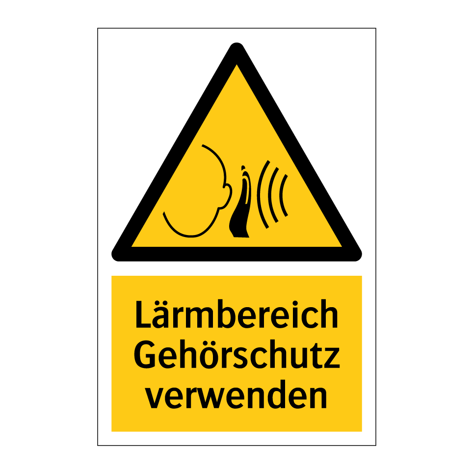 Warnschild mit dem Text Lärmbereich Gehörschutz verwenden