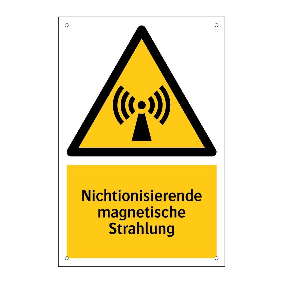 Warnschild mit dem Text Nichtionisierende magnetische Strahlung