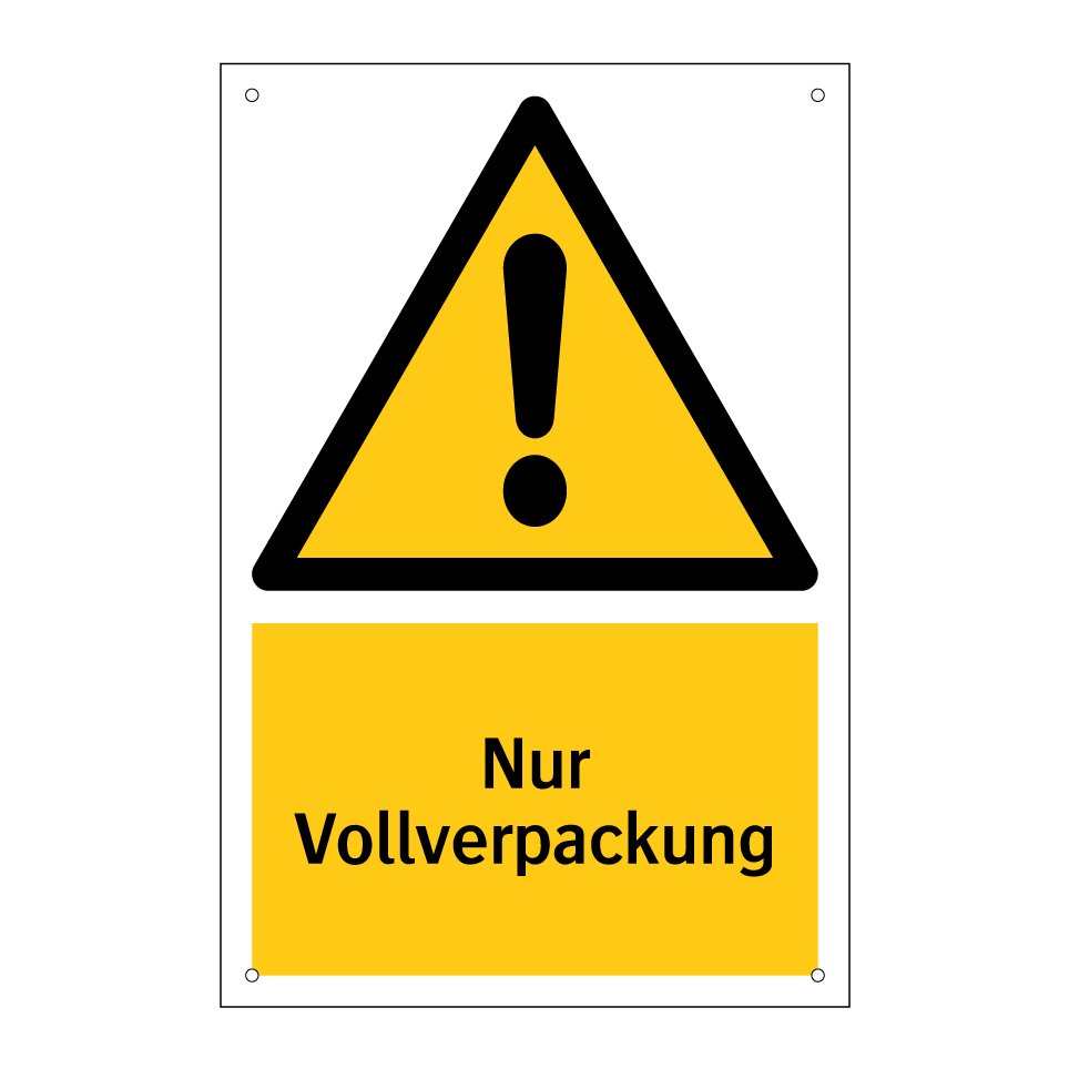 Warnschild mit dem Text Nur Vollverpackung