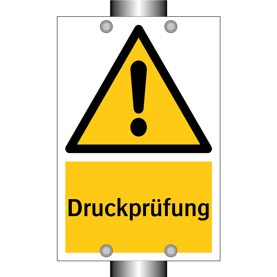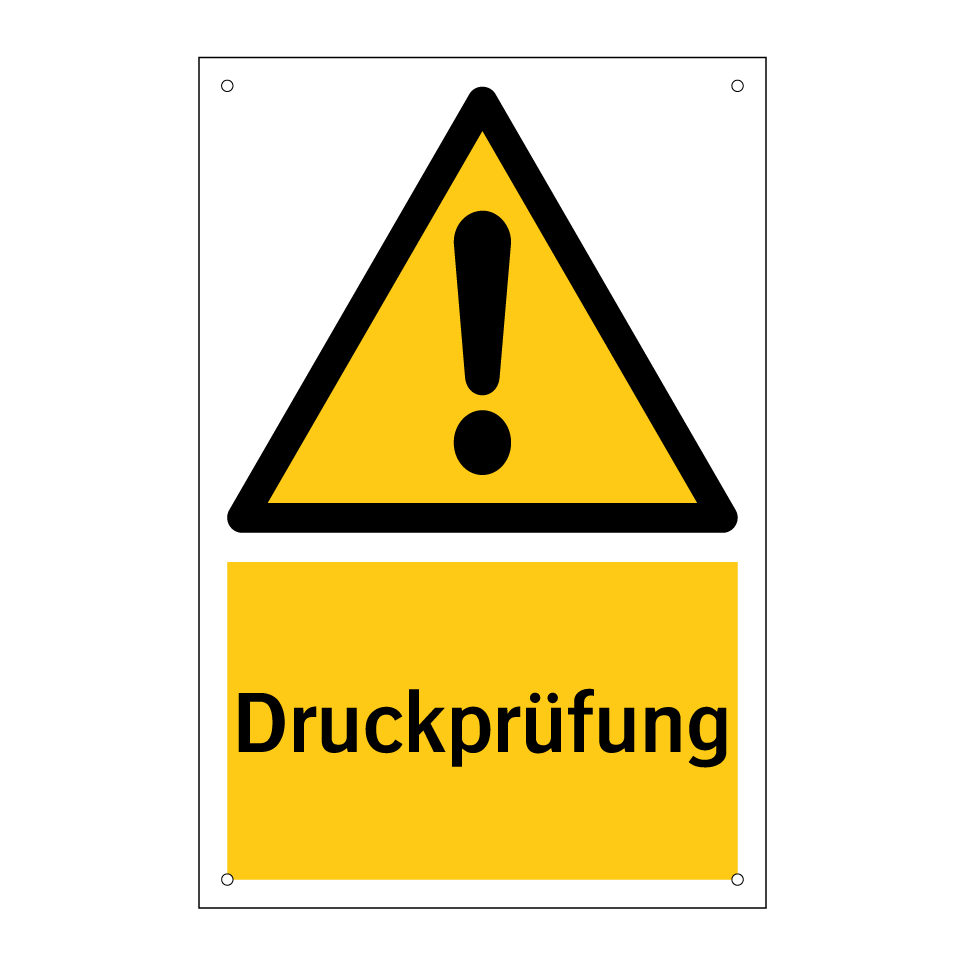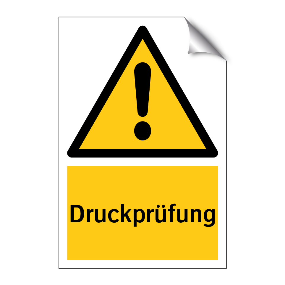 Warnschild mit dem Text Druckprüfung