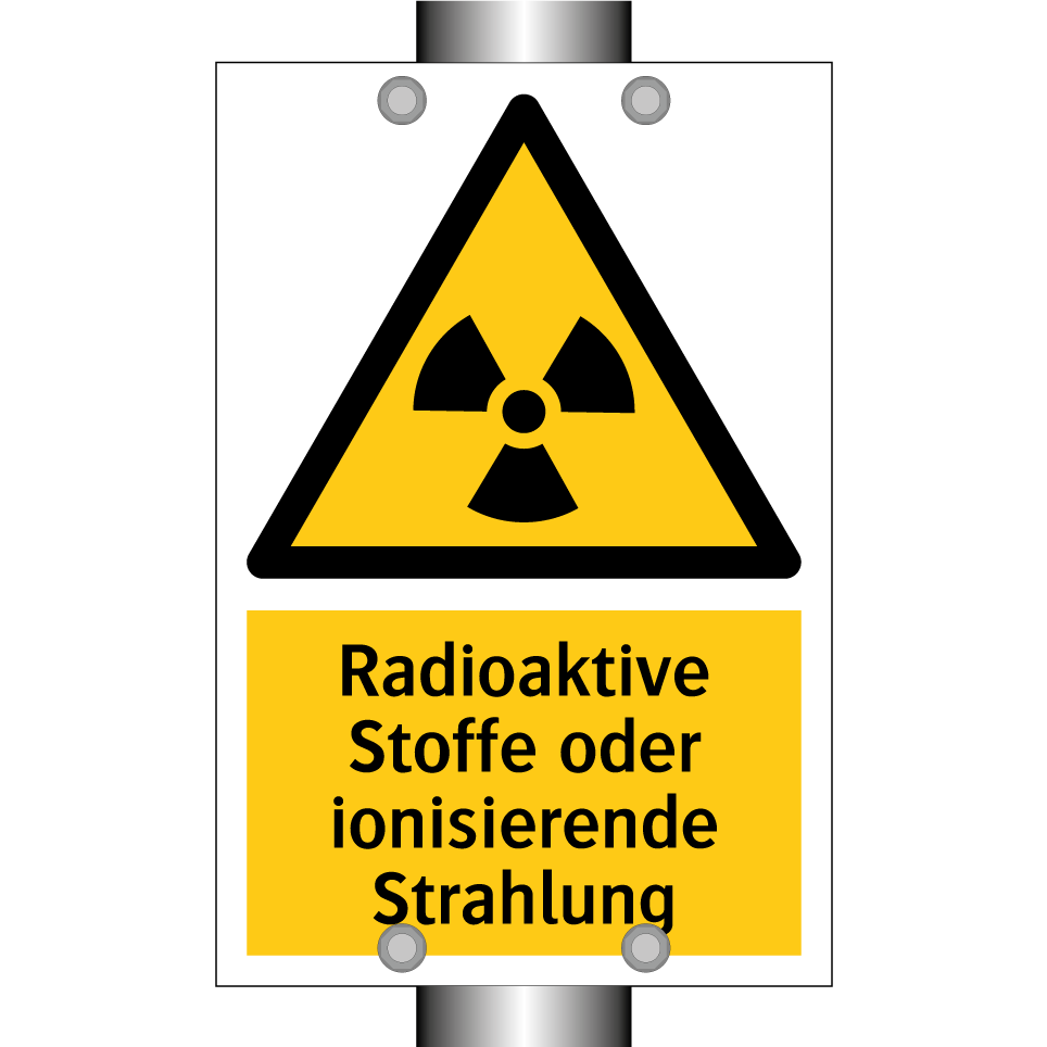 Warnschild mit dem Text Radioaktive Stoffe oder ionisierende Strahlung