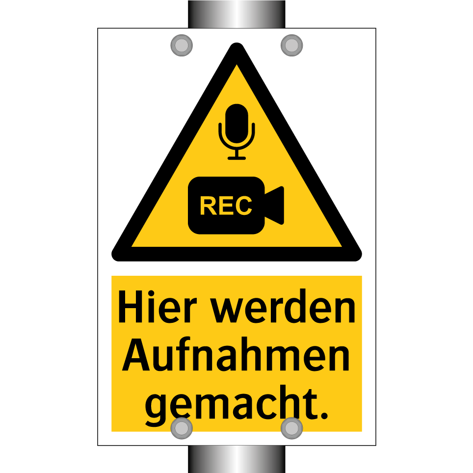 Warnschild mit dem Text Hier werden Aufnahmen gemacht.