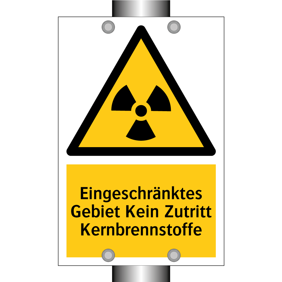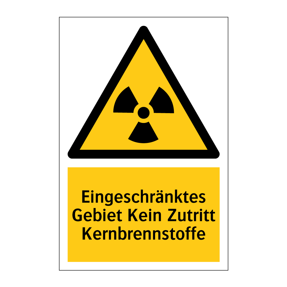 Warnschild mit dem Text Eingeschränktes Gebiet Kein Zutritt Kernbrennstoffe