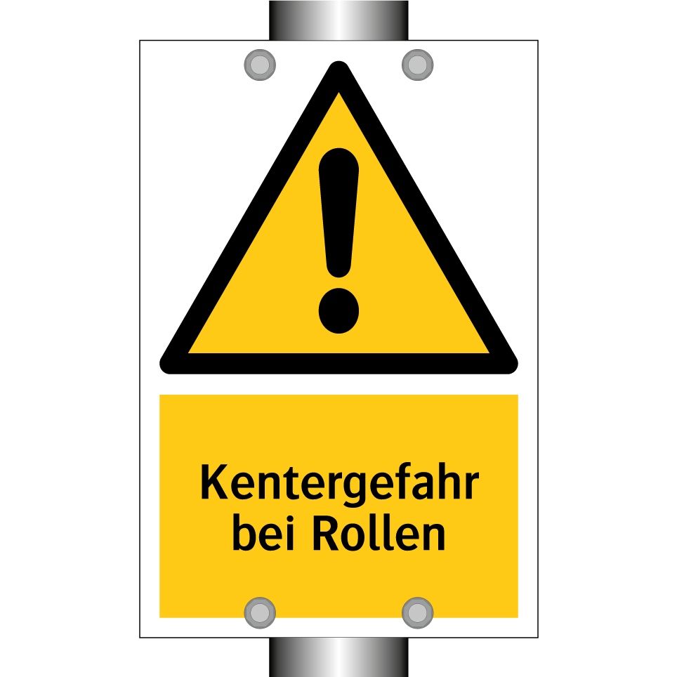 Warnschild mit dem Text Kentergefahr bei Rollen