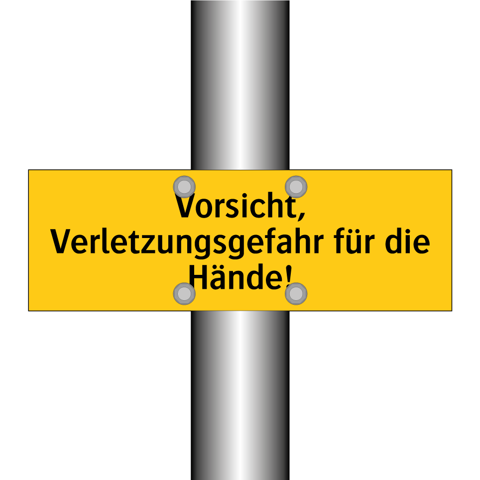 Warnschild mit dem Text Vorsicht, Verletzungsgefahr für die Hände!