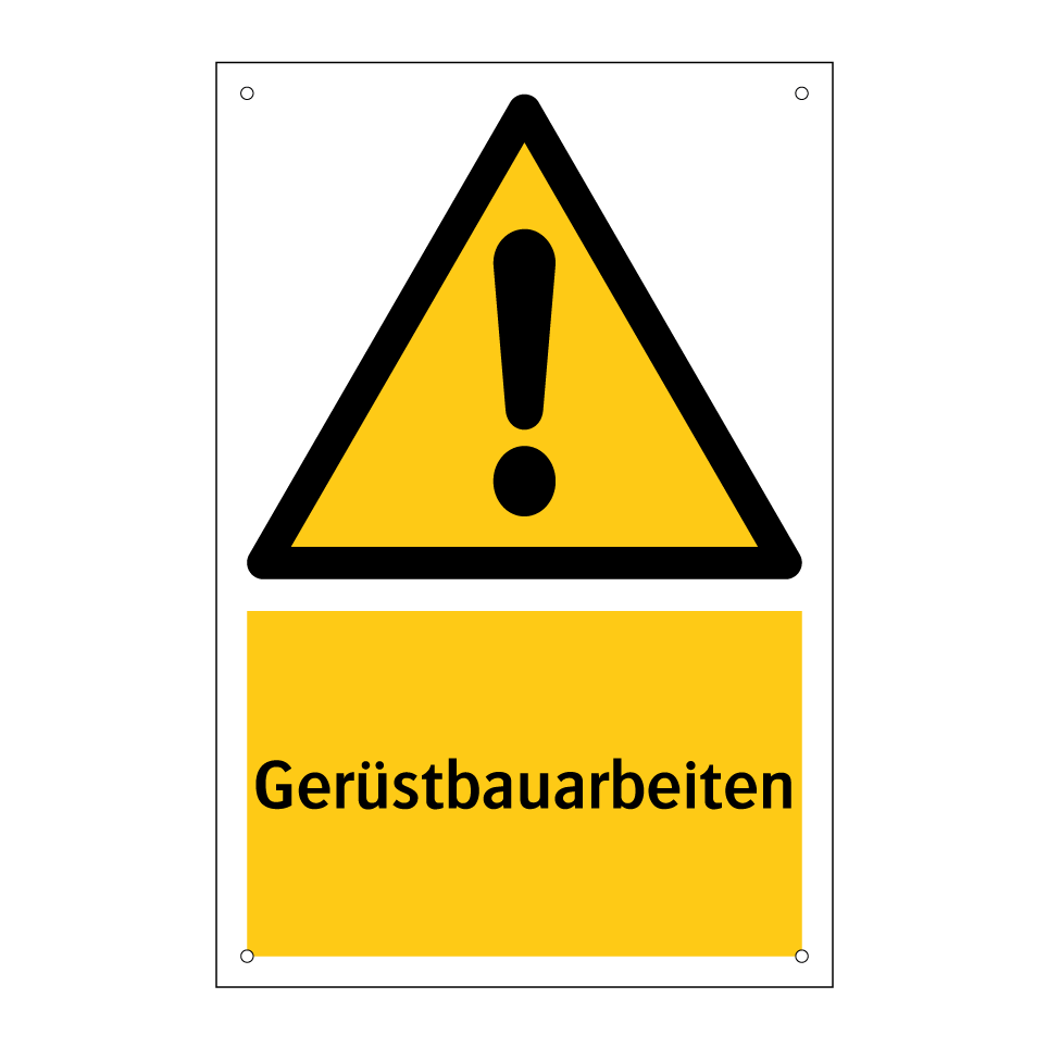 Warnschild mit dem Text Gerüstbauarbeiten