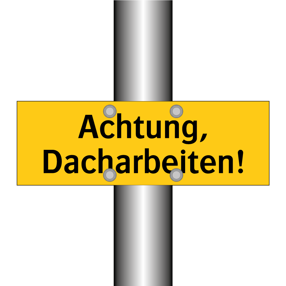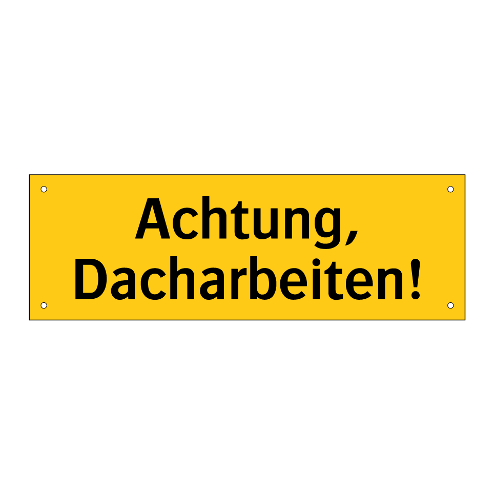 Warnschild mit dem Text Achtung, Dacharbeiten!