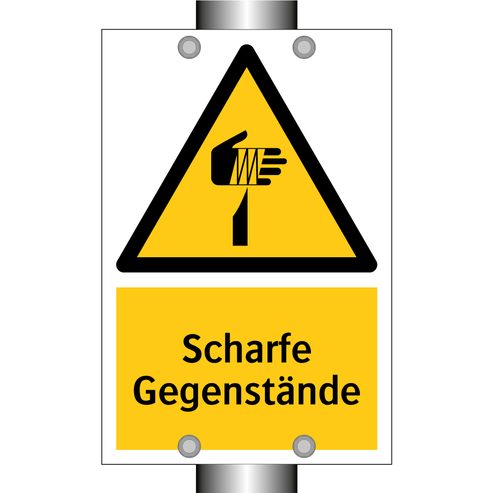 Diese auffällige Warnschild mit gelbem Hintergrund und schwarzem Text ist ideal, um auf die Gefahr von scharfen Objekten hinzuweisen. Perfekt geeignet für Werkstätten, Lagerhallen oder Produktionsstätten, wo scharfe Werkzeuge oder Maschinen im Einsatz sind. Platzieren Sie das Warnschild an gut sichtbaren Stellen, um Mitarbeiter und Besucher effektiv zu warnen und Unfälle zu vermeiden. Die klare Symbolik und die prägnante Botschaft sorgen dafür, dass die Warnung nicht übersehen wird. Nutzen Sie diese Warnschilder, um die Sicherheit in Ihrem Arbeitsumfeld zu erhöhen und potenzielle Gefahren zu minimieren.