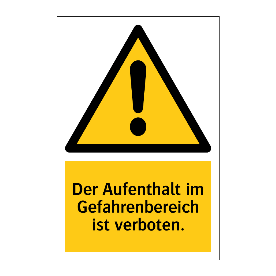 Warnschild mit dem Text Der Aufenthalt im Gefahrenbereich ist verboten.