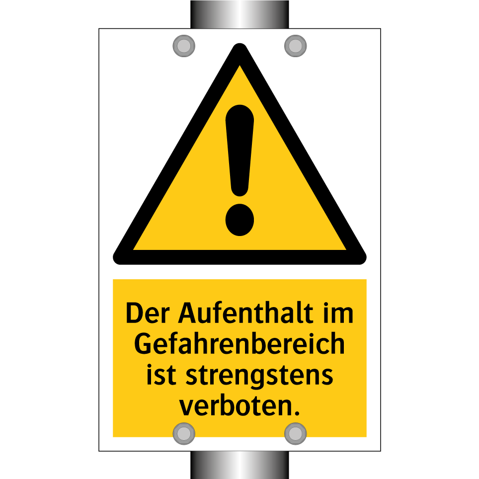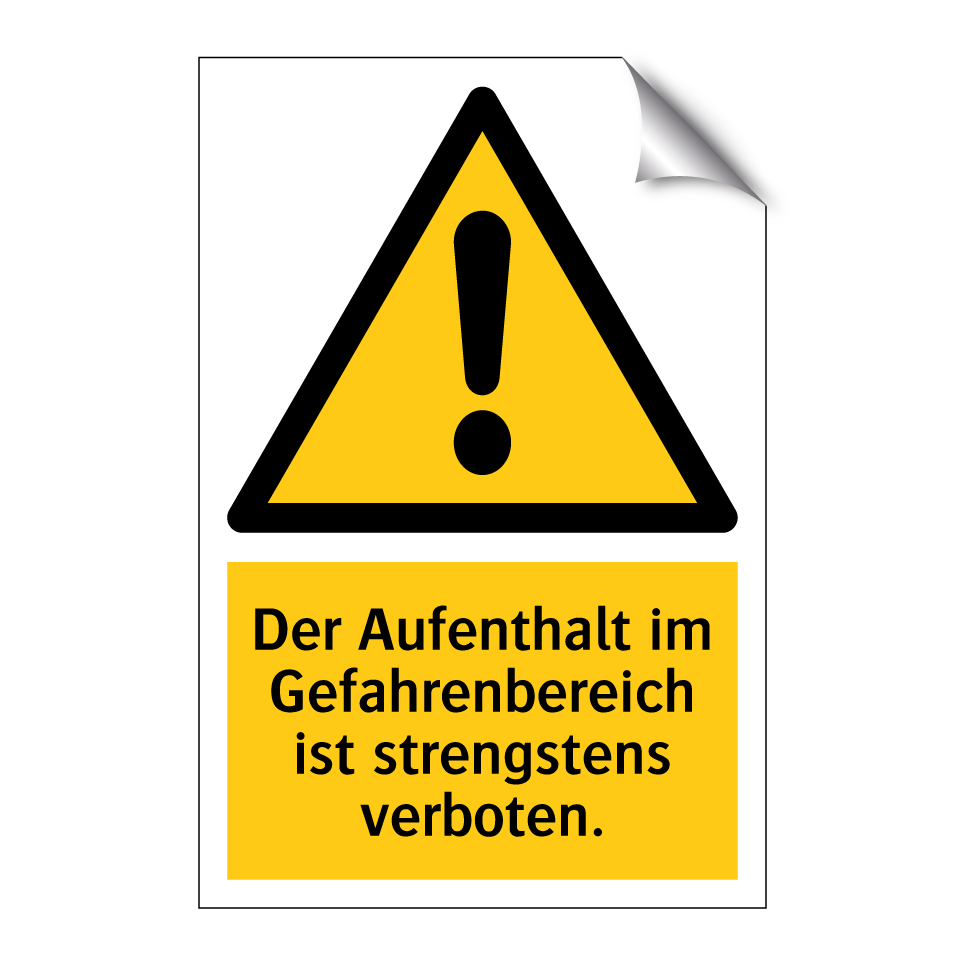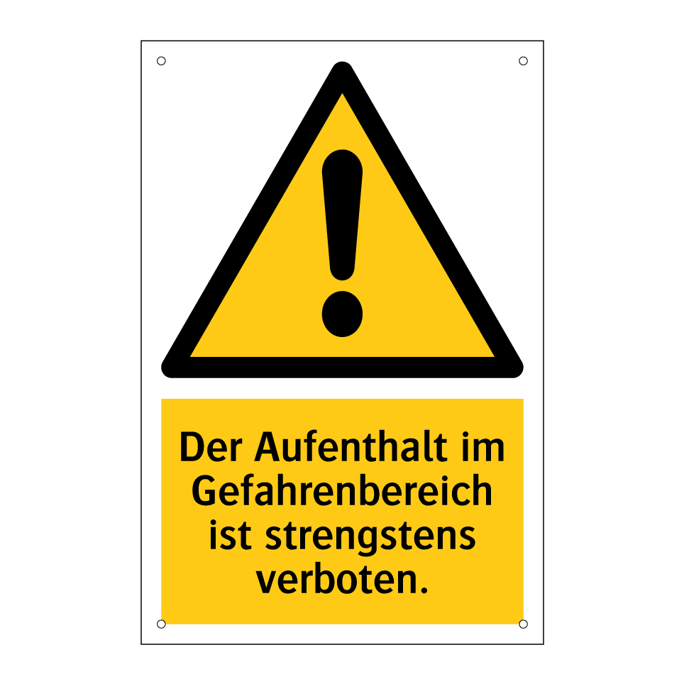 Warnschild mit dem Text Der Aufenthalt im Gefahrenbereich ist strengstens verboten.