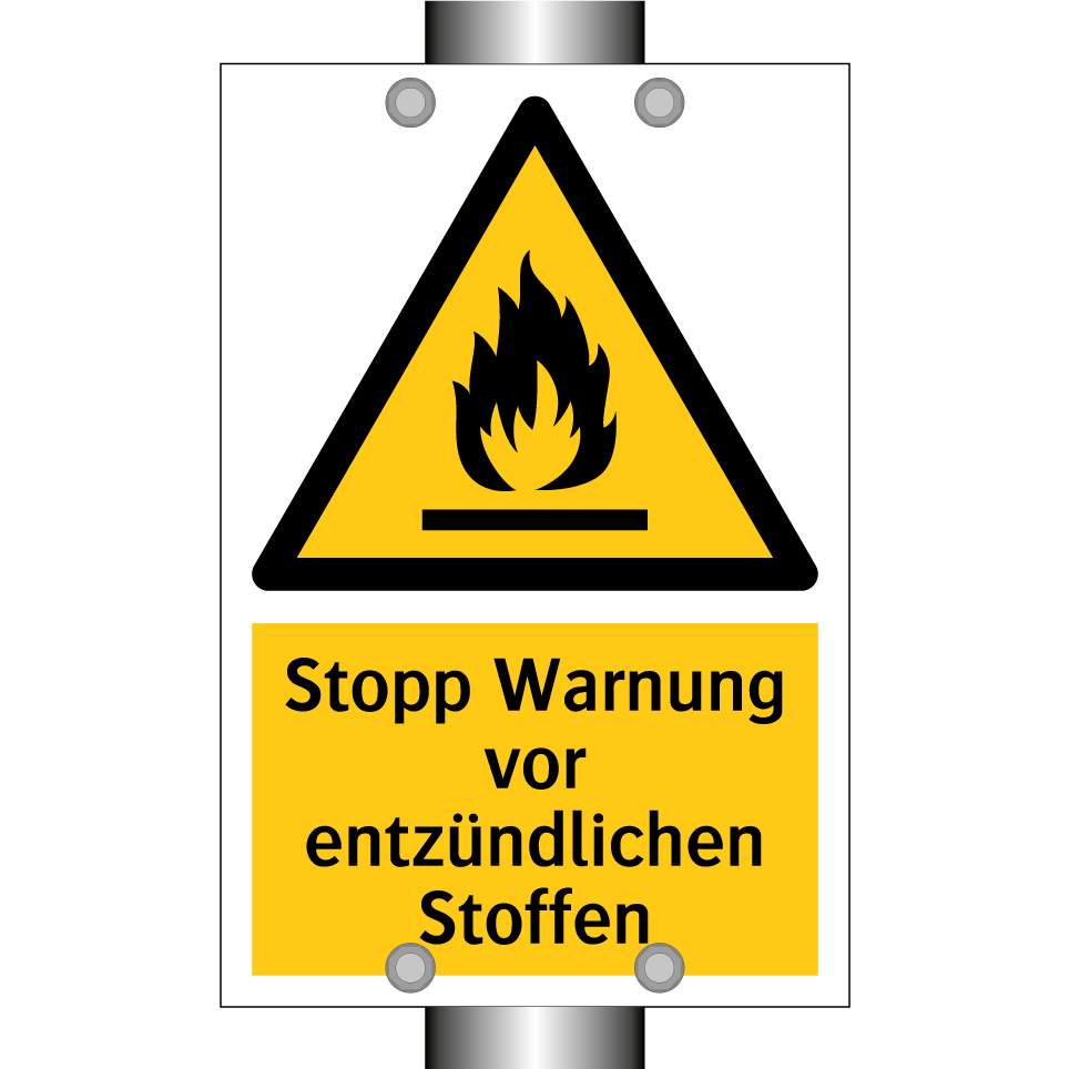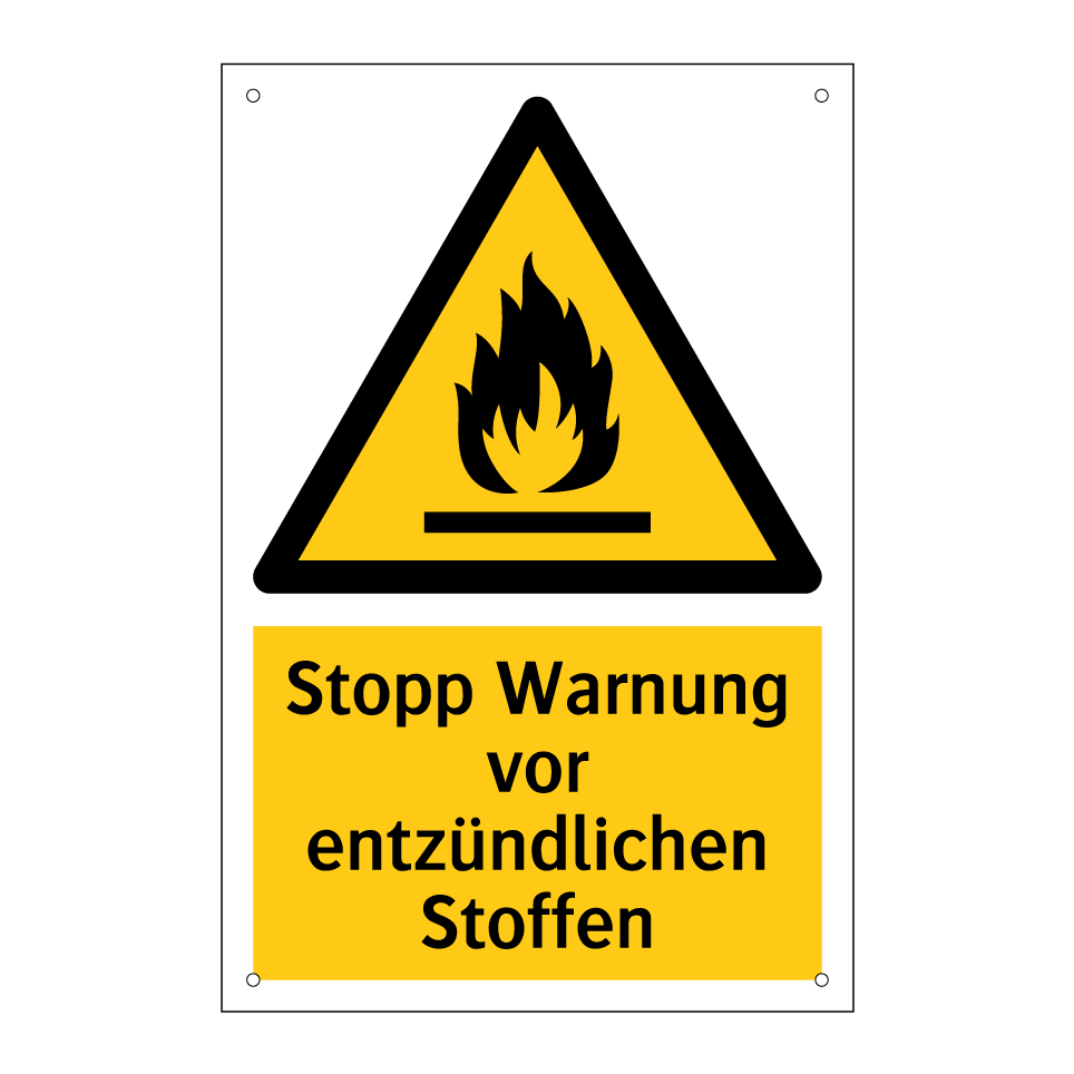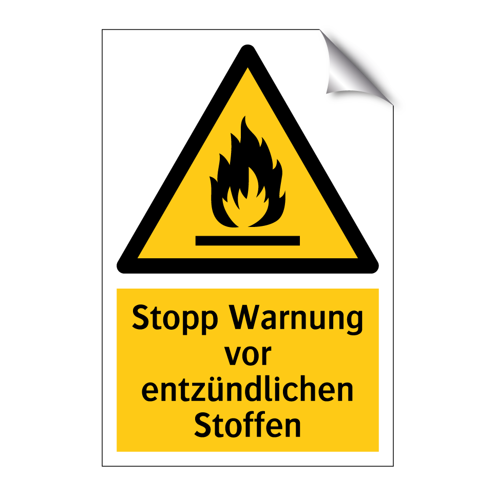Warnschild mit dem Text Stopp Warnung vor entzündlichen Stoffen