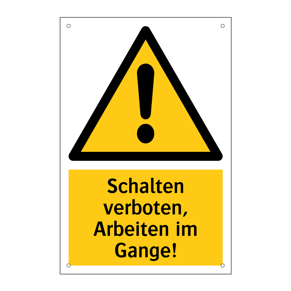 Warnschild mit dem Text Schalten verboten, Arbeiten im Gange!