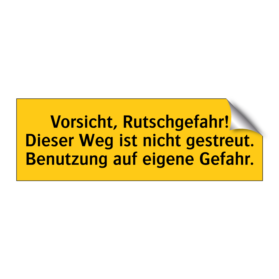Warnschild mit dem Text Vorsicht, Rutschgefahr! Dieser Weg ist nicht gestreut. Benutzung auf eigene Gefahr.