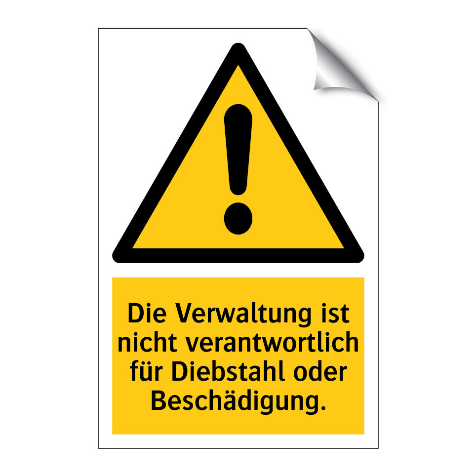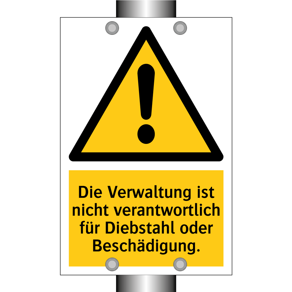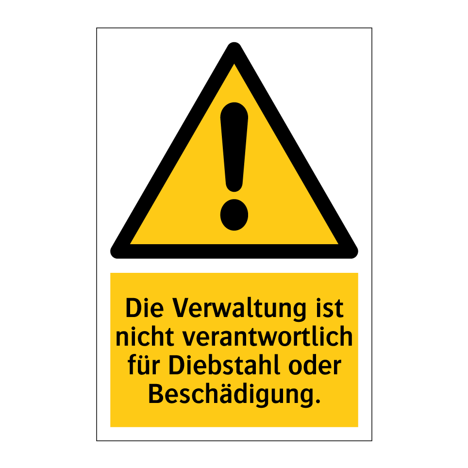 Warnschild mit dem Text Die Verwaltung ist nicht verantwortlich für Diebstahl oder Beschädigung.