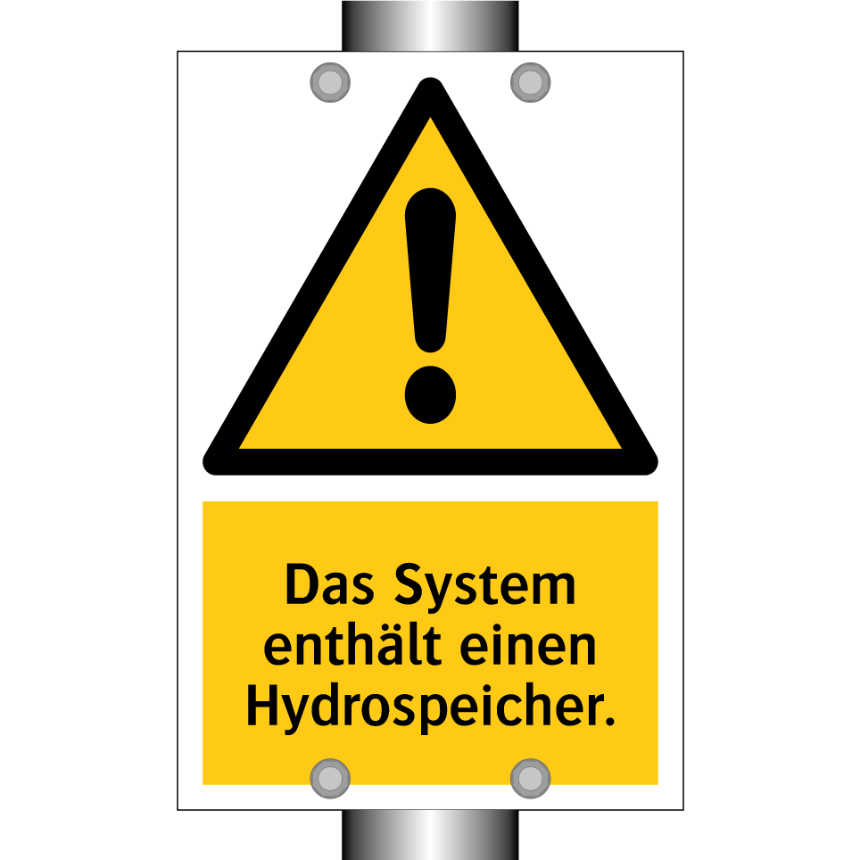 Warnschild mit dem Text Das System enthält einen Hydrospeicher.