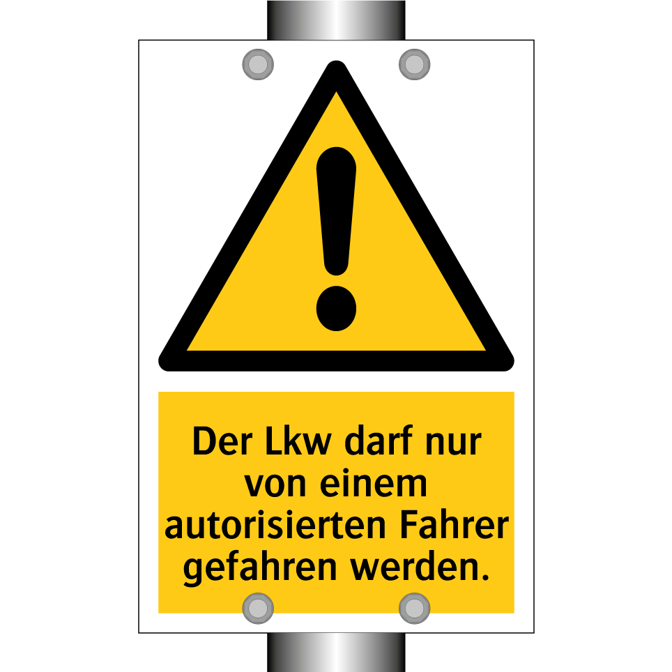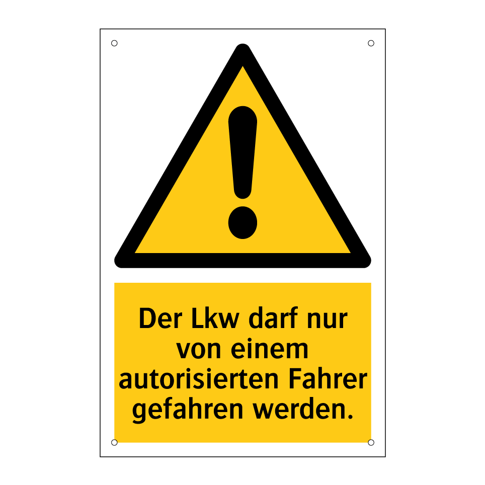 Warnschild mit dem Text Der Lkw darf nur von einem autorisierten Fahrer gefahren werden.