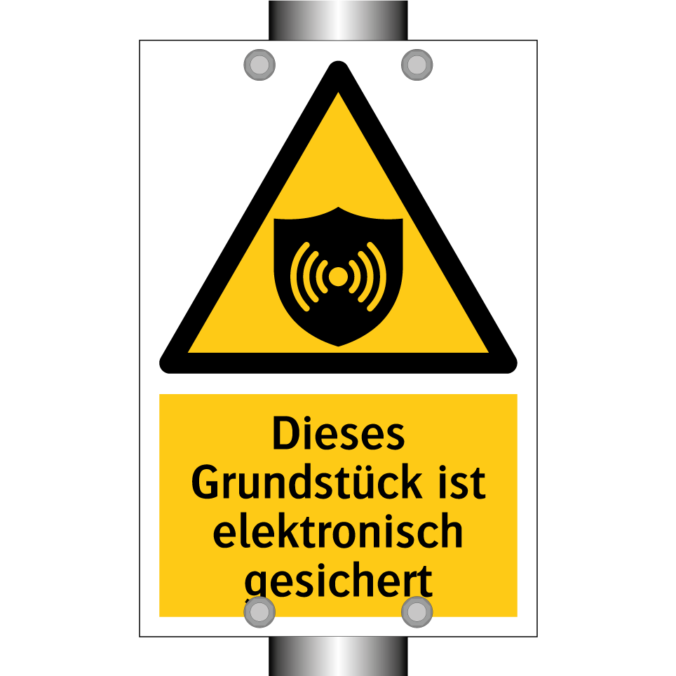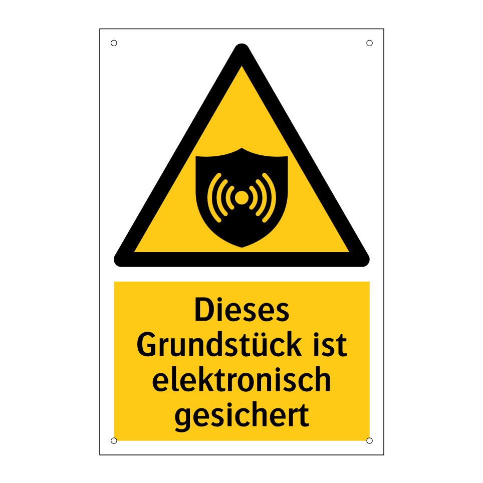 Warnschild mit dem Text Dieses Grundstück ist elektronisch gesichert
