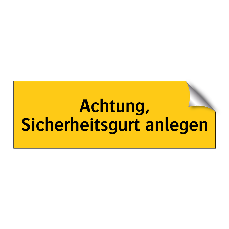 Warnschild mit dem Text Achtung, Sicherheitsgurt anlegen