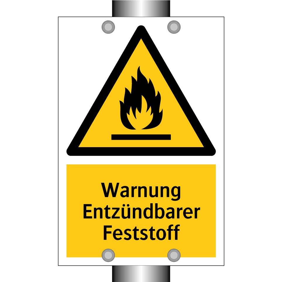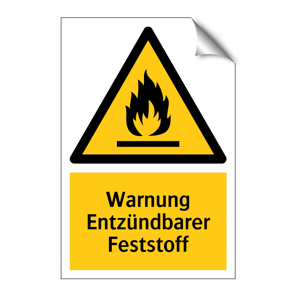 Warnschild mit dem Text Warnung Entzündbarer Feststoff