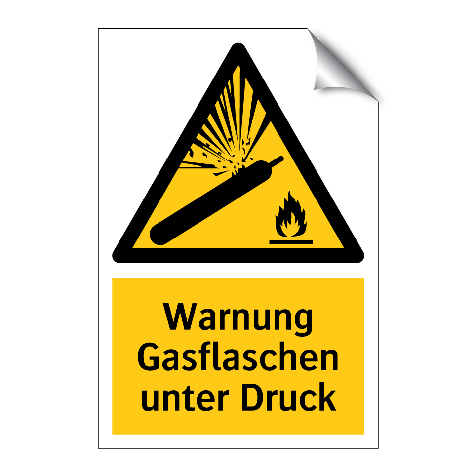 Warnschild mit dem Text Warnung Gasflaschen unter Druck