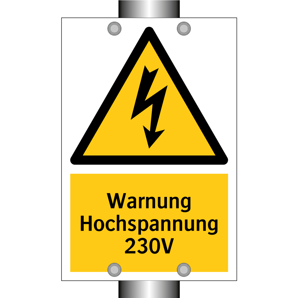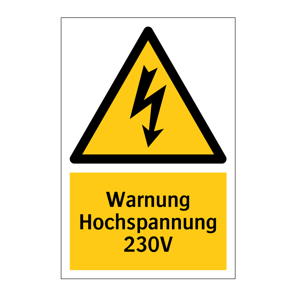Warnschild mit dem Text Warnung Hochspannung 230V