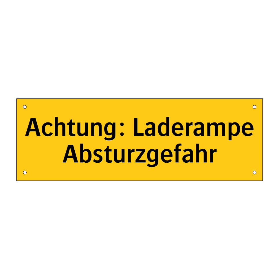 Warnschild mit dem Text Achtung: Laderampe Absturzgefahr
