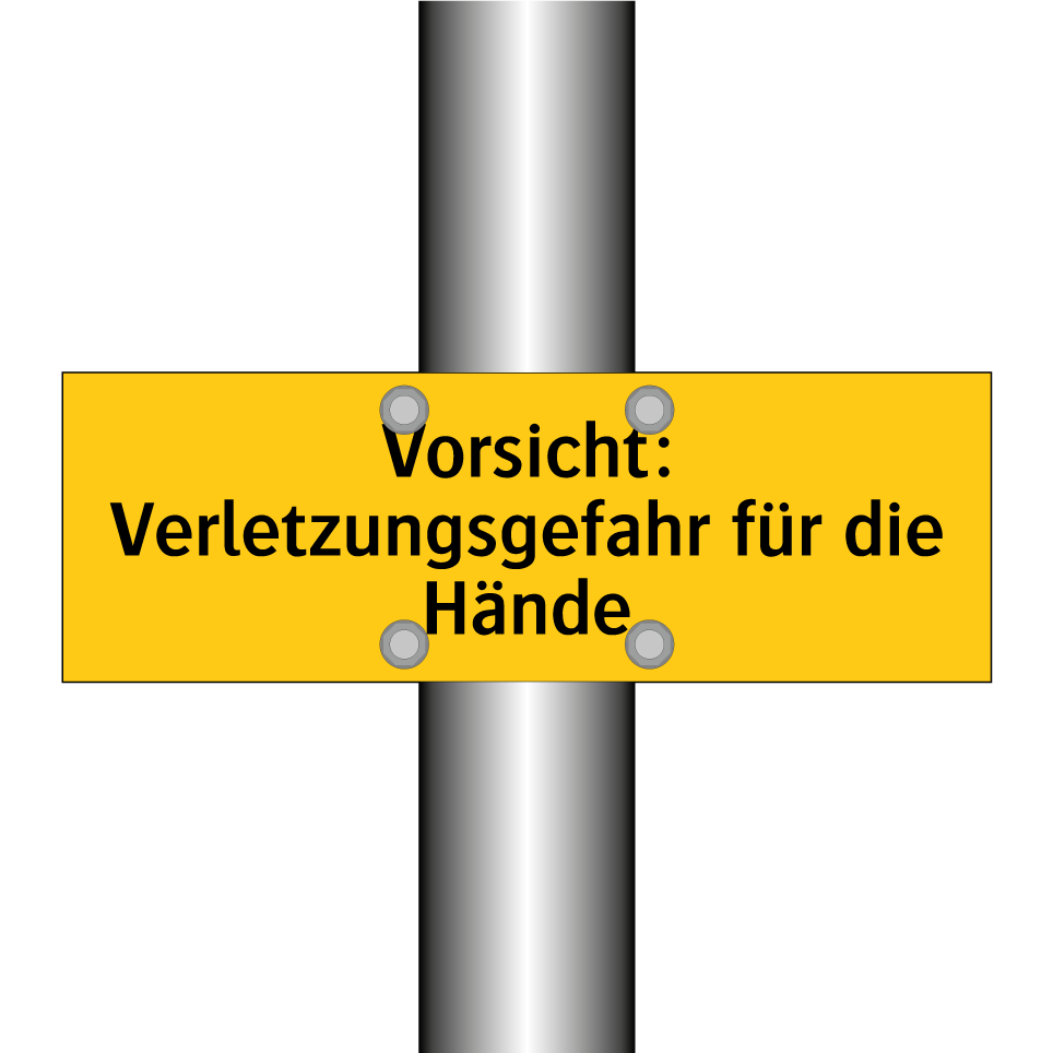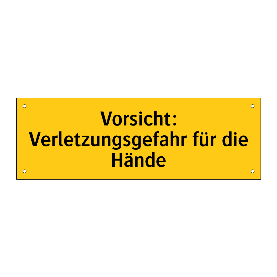 Warnschild mit dem Text Vorsicht: Verletzungsgefahr für die Hände
