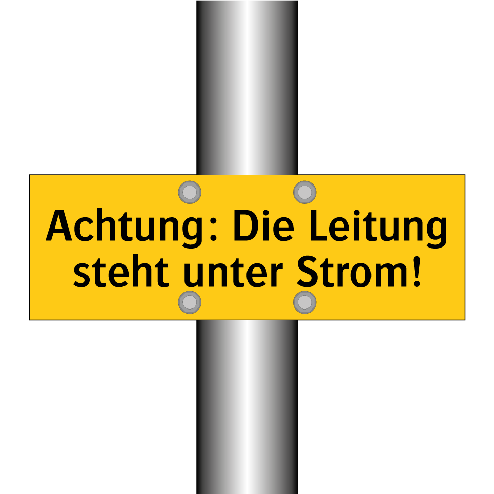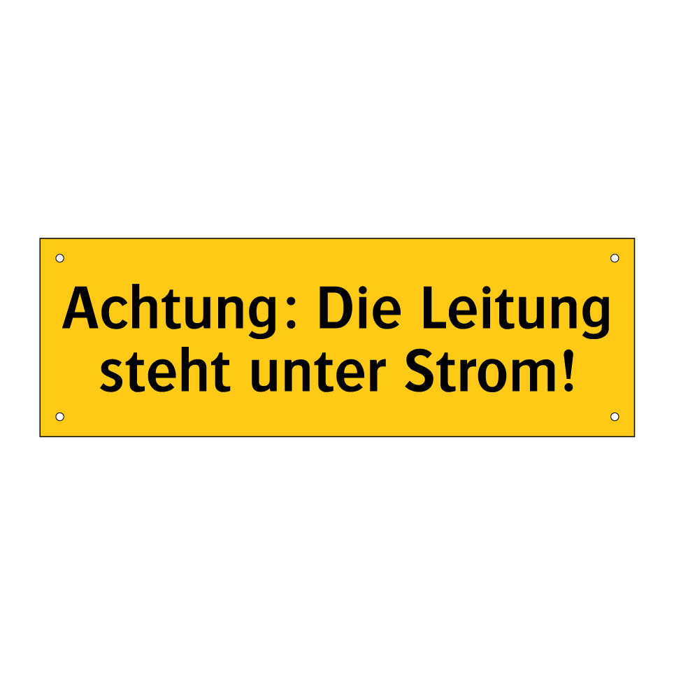 Warnschild mit dem Text Achtung: Die Leitung steht unter Strom!