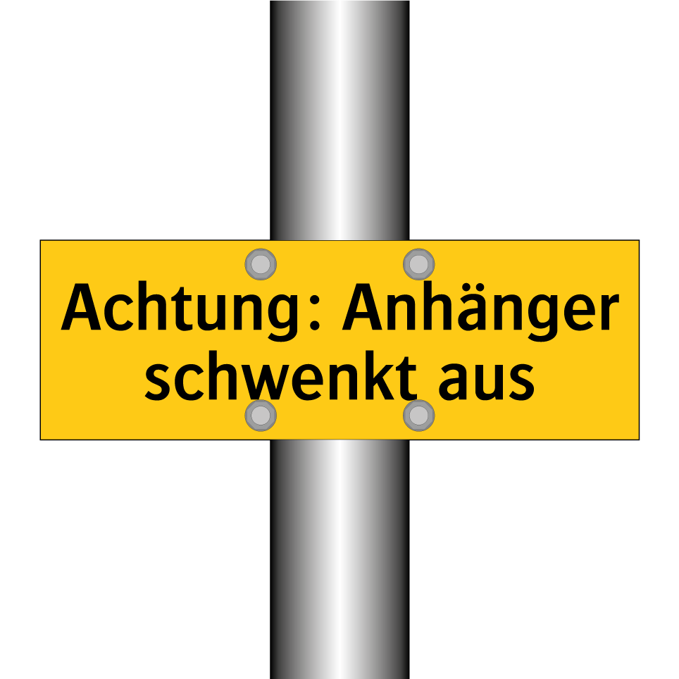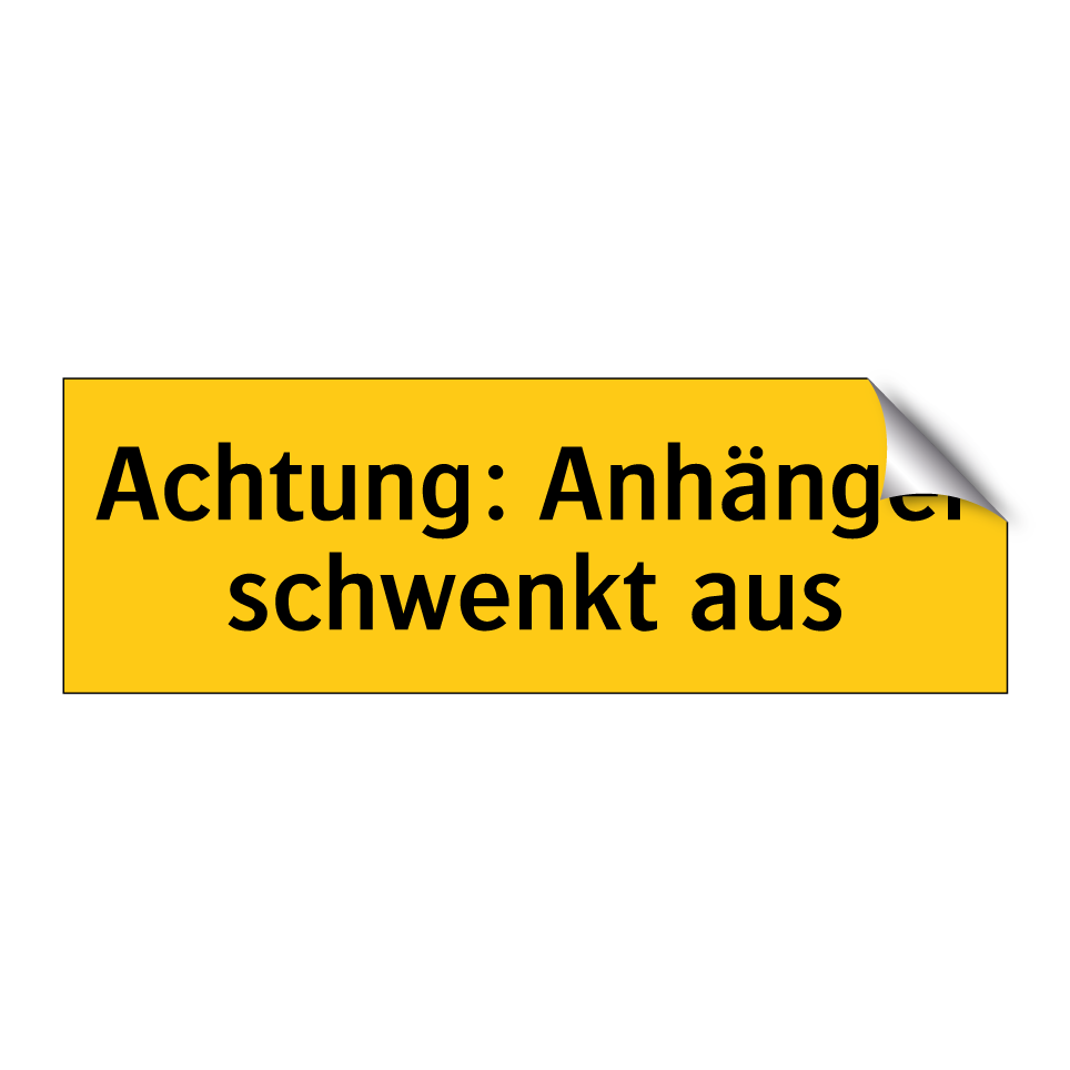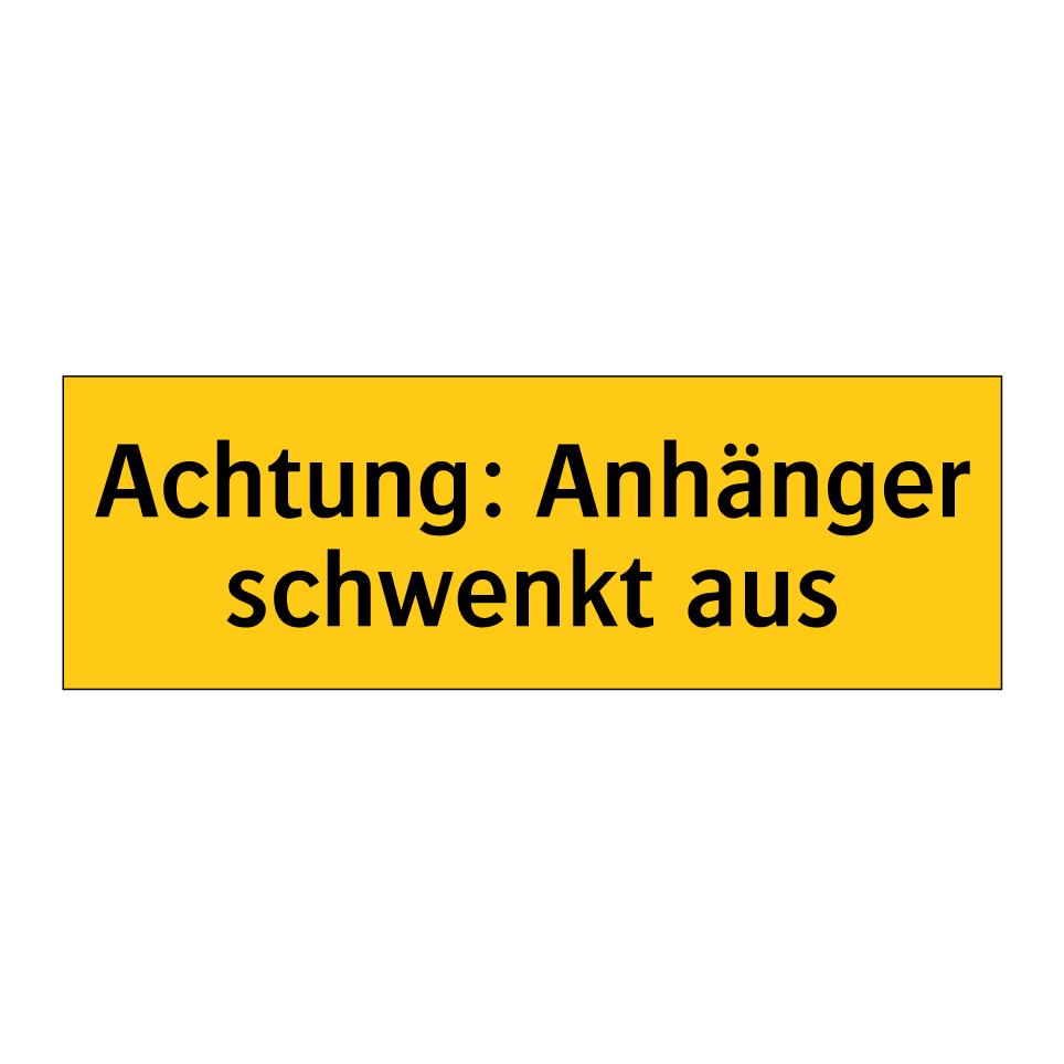 Warnschild mit dem Text Achtung: Anhänger schwenkt aus
