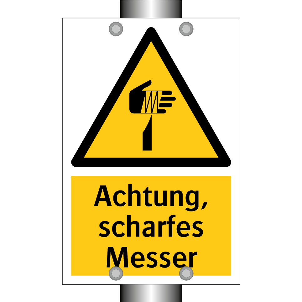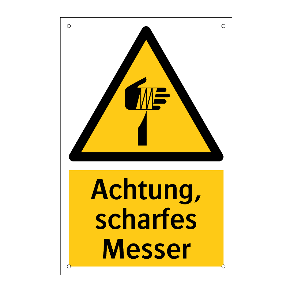 Diese auffällige Warnschild mit gelbem Hintergrund und schwarzem Text ist ideal, um auf potenzielle Gefahren hinzuweisen. Sie eignet sich hervorragend für Küchen, Restaurants oder andere gastronomische Einrichtungen, wo scharfe Messer im Einsatz sind. Platzieren Sie die Warnschilder an gut sichtbaren Stellen, um Mitarbeiter und Besucher effektiv zu warnen und Unfälle zu vermeiden. Die klare Symbolik und die prägnante Botschaft sorgen dafür, dass die Warnung nicht übersehen wird. Ob in der Nähe von Arbeitsflächen oder in Lagerräumen, diese Warnschild ist ein unverzichtbares Element für die Sicherheit am Arbeitsplatz.