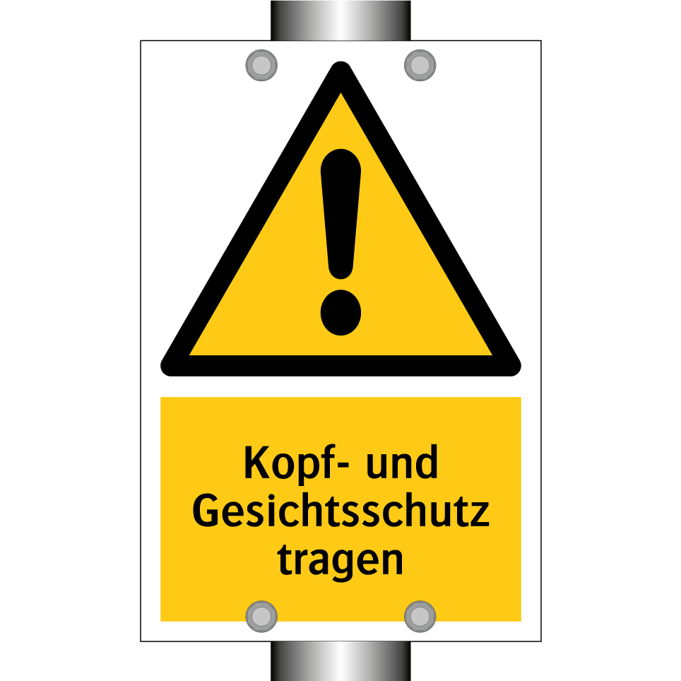 Warnschild mit dem Text Kopf- und Gesichtsschutz tragen