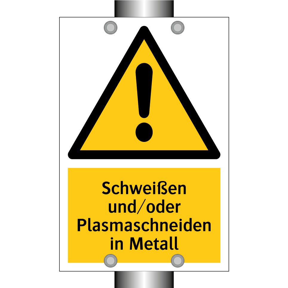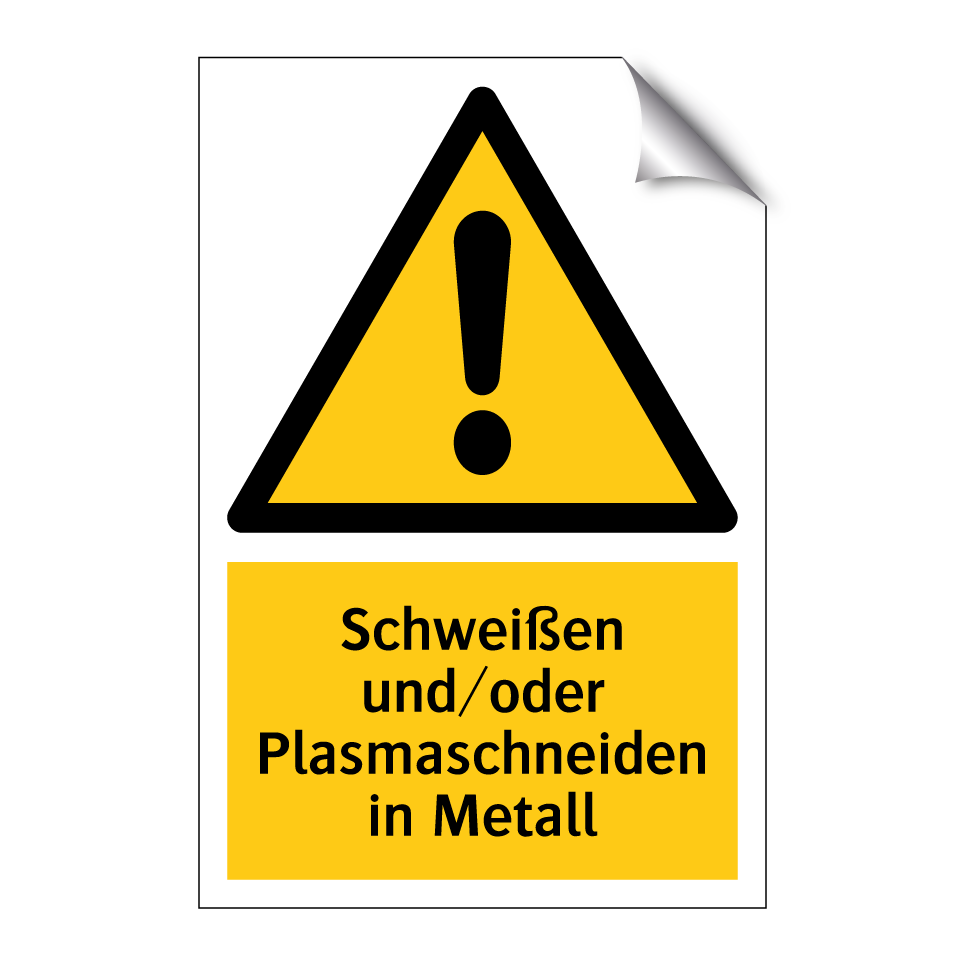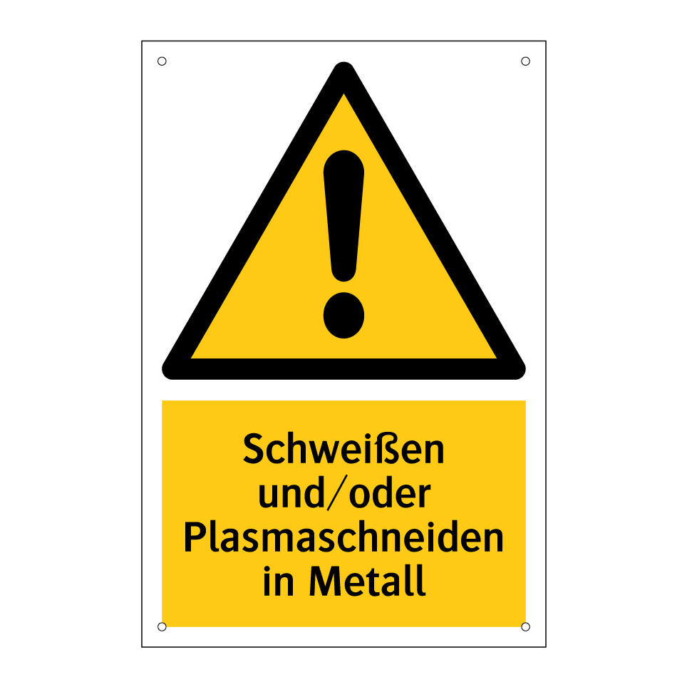 Warnschild mit dem Text Schweißen und/oder Plasmaschneiden in Metall