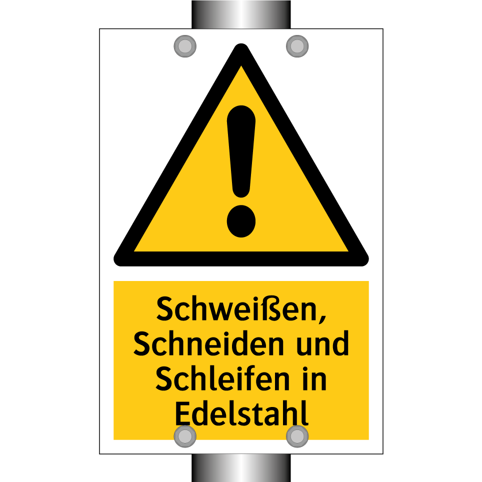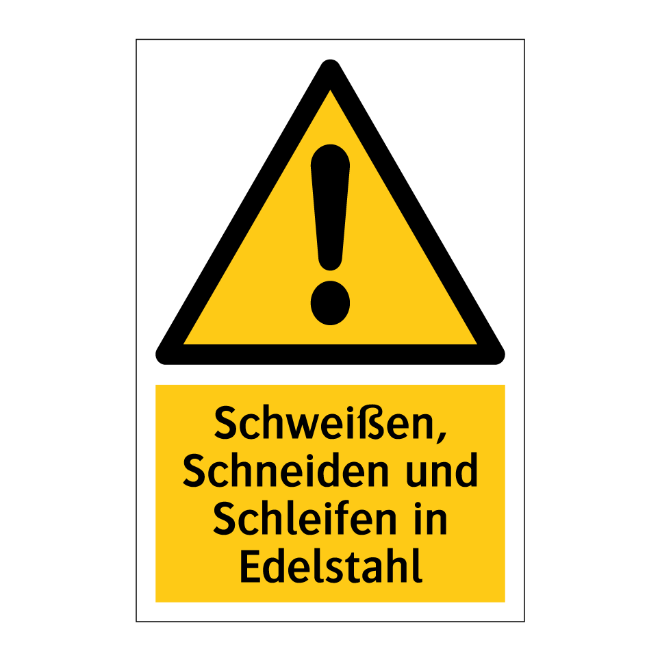 Warnschild mit dem Text Schweißen, Schneiden und Schleifen in Edelstahl