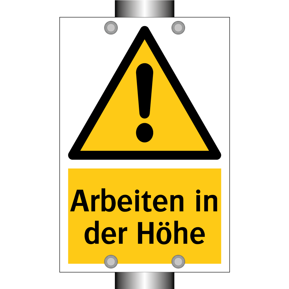 Diese auffällige Warnschild mit gelbem Hintergrund und schwarzer Schrift ist ideal, um auf Gefahren bei Arbeiten in der Höhe hinzuweisen. Sie eignet sich hervorragend für Baustellen, Lagerhäuser oder industrielle Umgebungen, wo Höhenarbeiten häufig vorkommen. Durch die klare Symbolik und die prägnante Botschaft wird die Sicherheit der Mitarbeiter erhöht, indem sie auf potenzielle Risiken aufmerksam gemacht werden. Platzieren Sie die Warnschilder an gut sichtbaren Stellen wie Eingängen, Treppen oder in der Nähe von Gerüsten, um sicherzustellen, dass alle Personen gewarnt werden. Diese Sicherheitsmaßnahme ist unerlässlich, um Unfälle zu vermeiden und die Aufmerksamkeit auf mögliche Gefahren zu lenken.