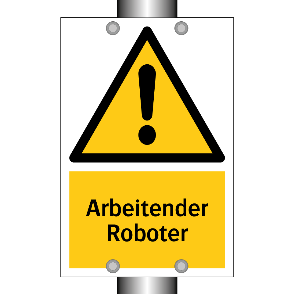Diese auffällige Warnschild mit gelbem Hintergrund und schwarzem Text ist ideal, um auf die Anwesenheit eines arbeitenden Roboters hinzuweisen. Sie dient dazu, Personen in der Umgebung zu warnen und ihre Aufmerksamkeit auf potenzielle Gefahren zu lenken. Diese Warnschilder sind besonders nützlich in industriellen Umgebungen, Produktionsstätten oder automatisierten Lagern, wo Roboter im Einsatz sind. Platzieren Sie das Schild an gut sichtbaren Stellen wie Eingängen, Wänden oder Maschinen, um die Sicherheit zu erhöhen und Unfälle zu vermeiden. Durch die klare Symbolik und die prägnante Botschaft wird die Bedeutung sofort erfasst, was die Effektivität der Warnung maximiert.