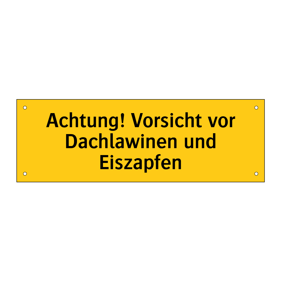 Warnschild mit dem Text Achtung! Vorsicht vor Dachlawinen und Eiszapfen