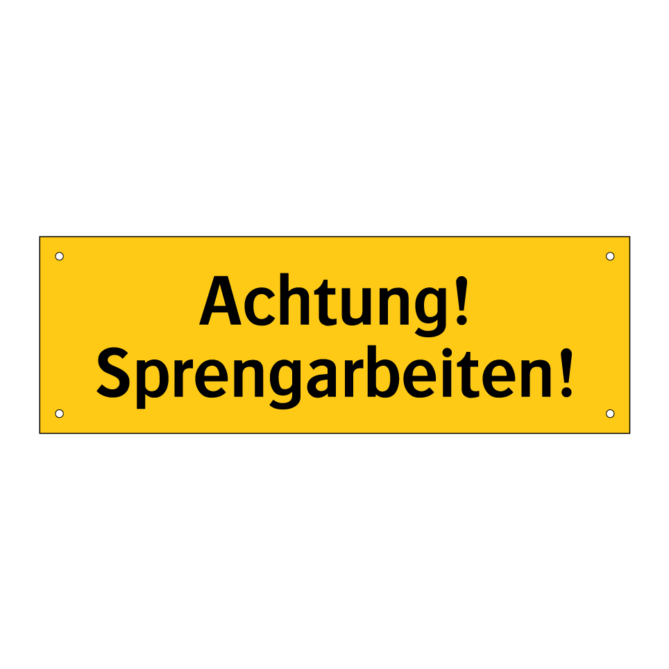 Warnschild mit dem Text Achtung! Sprengarbeiten!